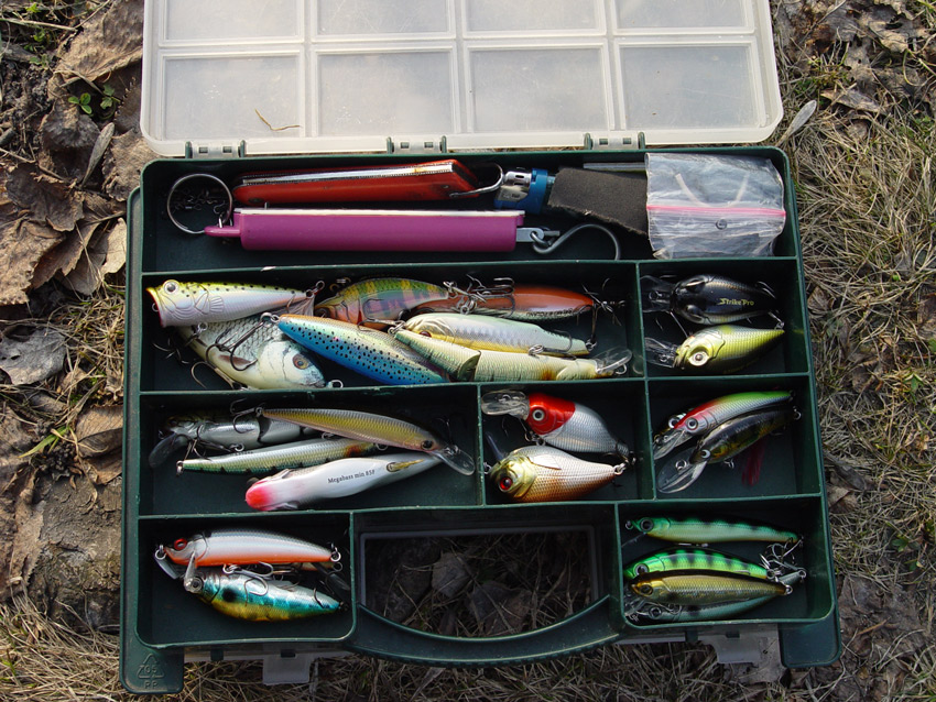 Сразу решил проверить мелкие участки с глубиной до полутора метра,-полный нуль,причём на все виды снастей...Перебрался джиговать на четырех-пяти метровую глубину,ситуация не изменилась,-полный игнор:(Видать рипа не зашёл ещё в эти воды.Встретил коллегу на лодке ,говорит ни одного тычка...Погода замечательная,настроение бесклёвье не испортило.Снасти на фото.