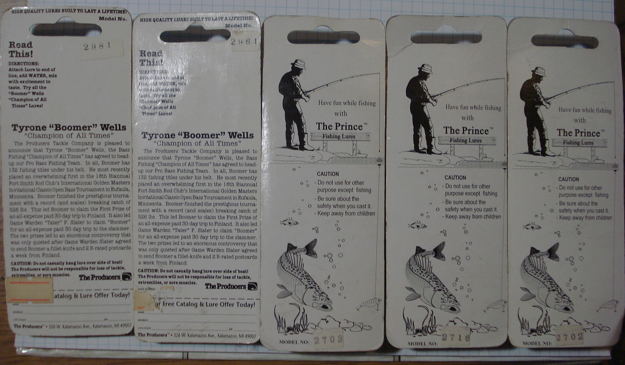 На 5 фотке,последние три(Принц),я когда то видел и один покупал,это скорее всего китаец,причем он у меня не работал,тонул камнем,и я его выкинул.Продавались они давно в 05-07 годах.По первым не скажу не чего.