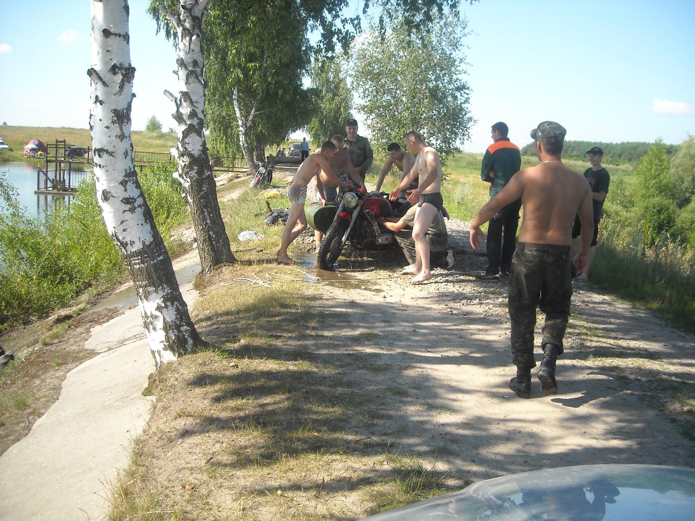 Зі звітом трошки запізнився, але я надіюсь актуальності він не втратив. На день рибака не поїхати на рибалку, якось не по рибацькі. Залишалось тільки вибрати куди, але і тут все пройшло без мене- син сказав, що хоче щоб постійно клювало, і таким місцем є звичайно став в Жалянці. Прогноз погоди виявивися на цей день чудовий, без хмар, без вітру, поспішати особливо не треба було, але в 6,00 ми буле уже на місці. Хоча вже було багато рибаків, як мені показалось місце ловлі було вибране чудове, по іншу сторону дамби, де попереднього разу покупався з мобілкою, яку до речі прийшлося викинути... Присипали місце, фішка карась, хоча можливо і не потрібно було, і вже за 15 хвилин почався постійний кльов. Основним уловними снастями на цьому ставі є прості махові поплавчанки 4-5 метрів, також пробував на фідер та дальню поплавчанку. Основною ж наживкою є мастирка, добре клювало на черв'як та манку. Готуючись на рибалку поприв'язував гачки Golden Catch №5, - "ковтунчики", але чомусь вони не виправдали себе - дуже часто карасики погано підсікались і відповдно було багато обривів. Поміняв на Owner №6(на вигляд вони значно більші) - ситуація змінилася повністю, навіть двоє карасиків зацепив не на наживку. Нагадую плата за рибалку залишилася як і раніше 50 грн(для нас на двох). Про рибалку начебто і все. Але це не простий день, а день рибака, відповідно просто він так не пройшов. Десь біля 8 ранку на мотоциклі МТ з каляскою прибули порибалити місцеві хлопці, спочатку ж звичайно відмітили свято. Дехто навіть і рибалив, а дехто рішив провірити навики водіння. На щастя до моєї машини не доїхали, а на їхнє нещастя не справивились з керуванням і по плитам, і в став. Глибина достатня, мотоцикл під водою зі всім одягом мобілками і т.д.. Години три вирішували де знайти трактора, а потім запряглися всі дружно вдесятох витягли на берег. Я зробив декілька фоток, після чого мене запитали чи не відзняв на відео-на жаль ні. Так що ми білет купували не даремно. Не дивлячись на постійні пошуки мобільних на мотоциклі та іншого в десяти метрах від нас, кльов як не дивно не переставав. Що приємно, підійшов сторож і вибачився за хлопців. Загалом рибалка вийшла на славу. До 15.00 було зловлено 197 карасиків, що складає 6,9 кг і як завжди на цьому ставку приблизно третя частина була випущена підростати.