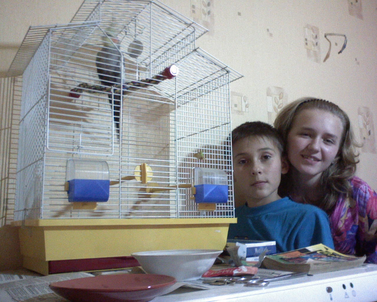 мое зверье дома целый зверинец как говорили фабрика по производству котят зовут Василиса, возраст не знаю приблуда живет лет шесть у нас пришла к жене на работу забралась на второй этаж и к жене на руки мурчать, вот так и живет, рыбу чует за два километра, тоже на ней продукты проверяем. попугай прожил с полгода , а потом улетел через форточку зараза, ну а фотка осталась, дети горевали сильно, каюсь моя вина не досмотрел. в аквариуме подарки от тещи детворе к какимто праздникам жаба и тритон, его на фотке не видно