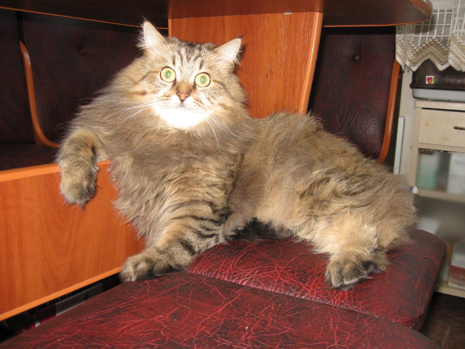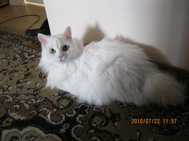 Вот наша НАХОДКА, сын в нашем дворе нашёл в первых числах октября, худое, чахлое и с температурой! Подлечили, откормили, и вот такое вышло чудо! Кошечка ЛЮСЯ, помесь, как сказали в ветлечебнице, домашней с русской голубой (я такой породы и незнал), очень игривая! Любимое блюдо-отварное филе щуки или судака с добавлением ливерки! Вот так!;)