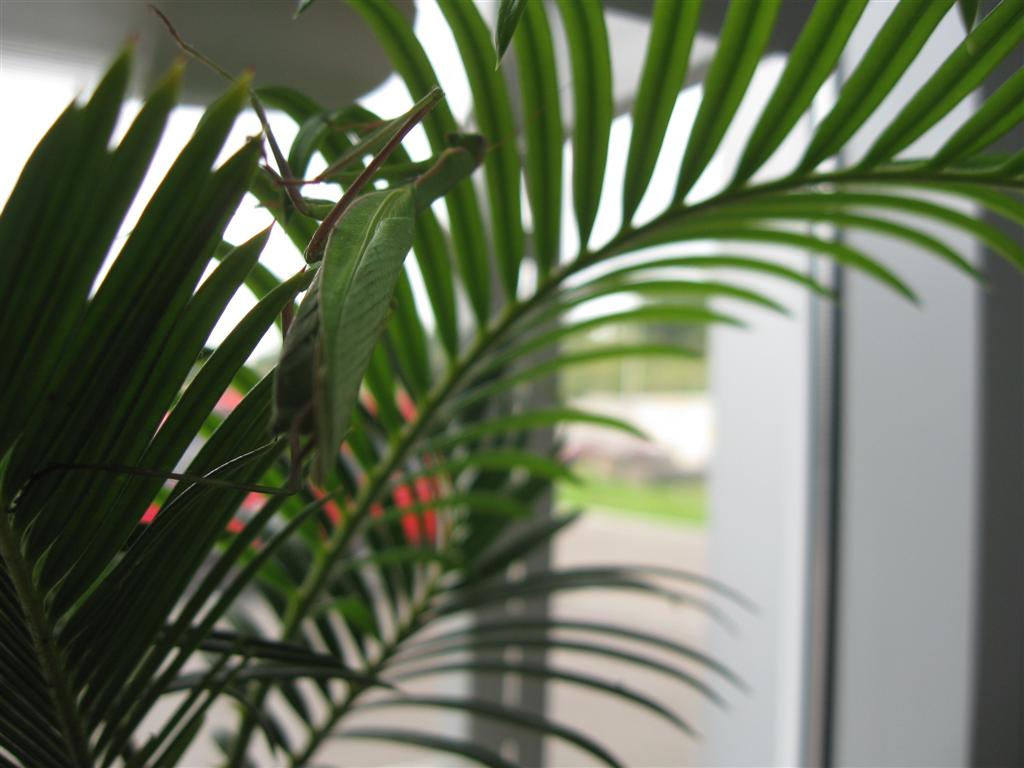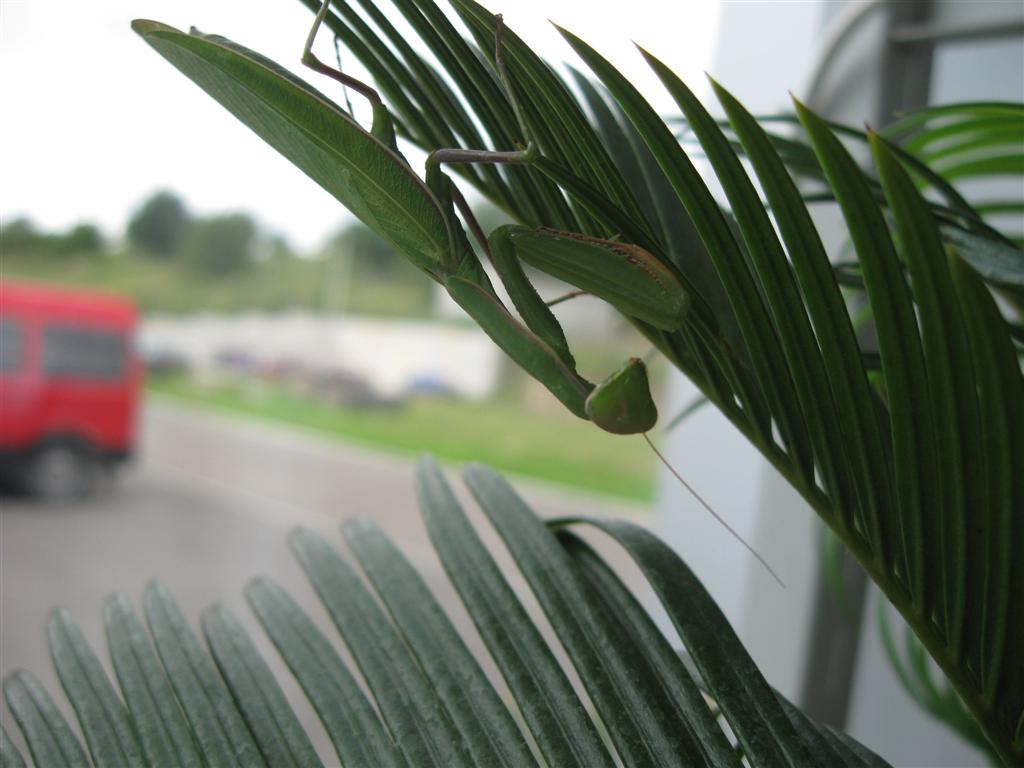 У нас на работе появился общий любимец БОГОМОЛ. В наших не особо солнечных и теплых краях никогда их не встречал, а в этом году нашли на територии, теперь он живет на горшке с растением. Мы его кормим мухами. Очень интресно наблюдать как он их хватает с листка и жрет живьем. Еще не одна из его цепких лап не вырвалась. Вот такой у нас питомец
