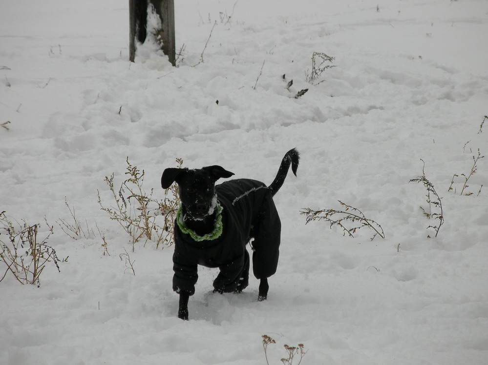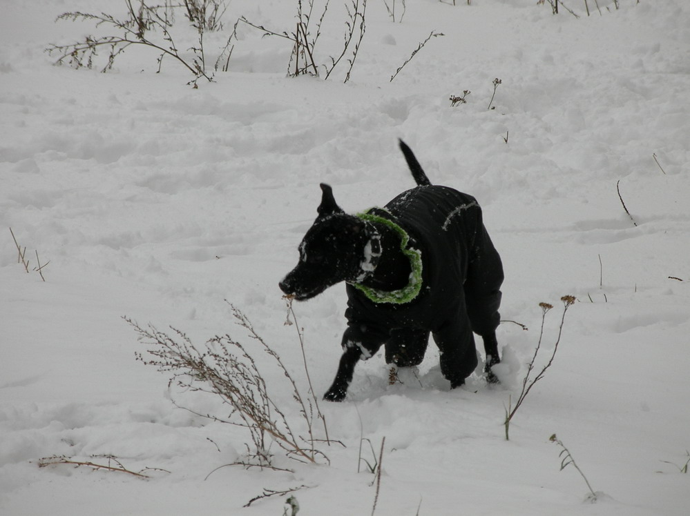 Сегодня мой собак первый раз увидел снег. Заодно и пиджак испытал свой новый.