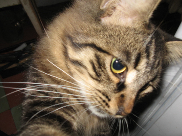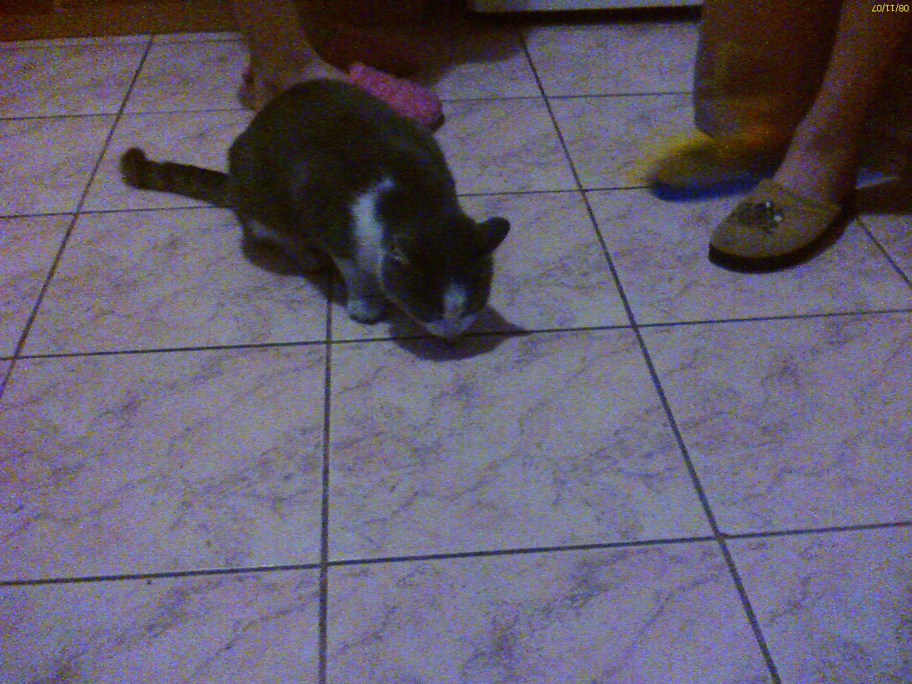 Вот кошечка, которая каждый день приходит к нам в гости. Что удивительно никогда не мявкает, даже когда рыбу даеш только тихонько муркает.