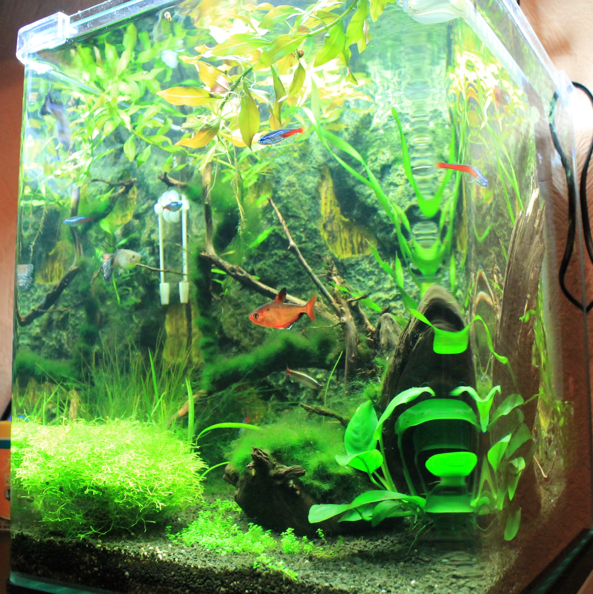 Мое еще одно увлечение.Два аквариума один с хищниками на 200 литров и один с живыми растениями на 30 литров;)