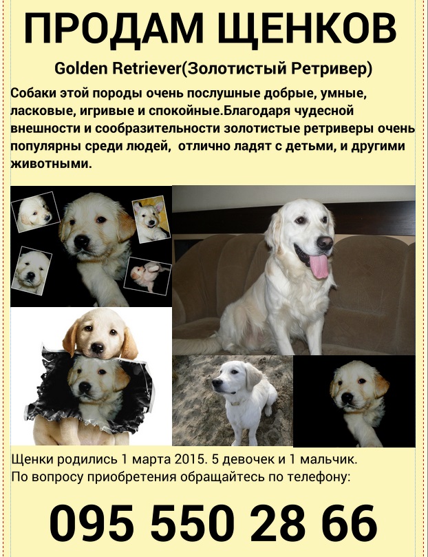 1 марта мой Барбос стал многодетным папой! Родились 6 щенков. 5 лапочек дочек и один сыночек Потомственный рыбак. Если кого интересует верный друг породы Голден Ретривер, обращайтесь в личку. Пока нет фоток потомства, выставлю детский портрет моего Джулая. И фото его папы Мирона или Ch. Ambergold GK Keen Pleasure Подробнее о родителях можно прочесть здесь http://xn--80aab1be1a1f.in.ua/dzhulaj-zolotoj-retriver Фотографии вот http://xn--80aab1be1a1f.in.ua/fotogalereya-zolotoj-sobaki