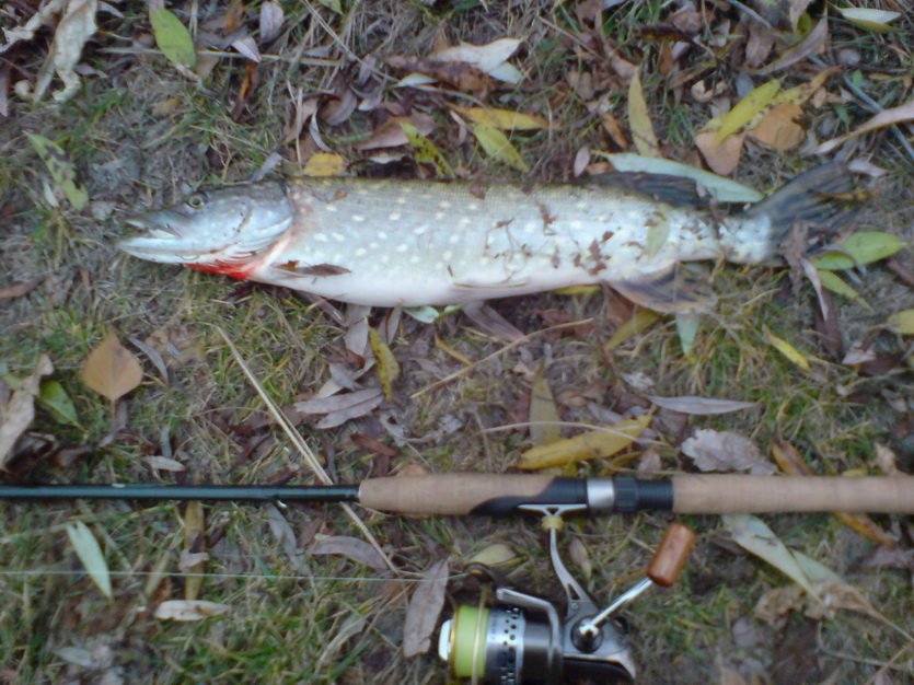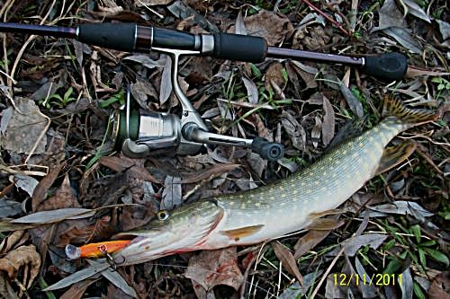 Сегодня и я с кумом прокатились на рыбалку,можно сказать "почти закрытие сезона 2011г".Всю эту неделю ездили практически каждый день,щука брала исключительно на силикон,проводка самая медленная или подброс пауза,двойной подброс пауза,щука попадалась от 1.2кг до 4.9кг как сегодня!Отмечу отменную работу нового своего прута:ST.CROIX LES 86MF2,с учетом моей поездки на ДЕСНУ и в Днепровское,по джигу работали веса от 8гр до 30гр,по воблерам опробовал Орбит 110.Довольно не плохой оказался шнур Sufix perfomanse Braid 0.16мм.П.С.не посмотрел эту тему,а мой мини отчет скорее по Киевской,Черниговской областям.