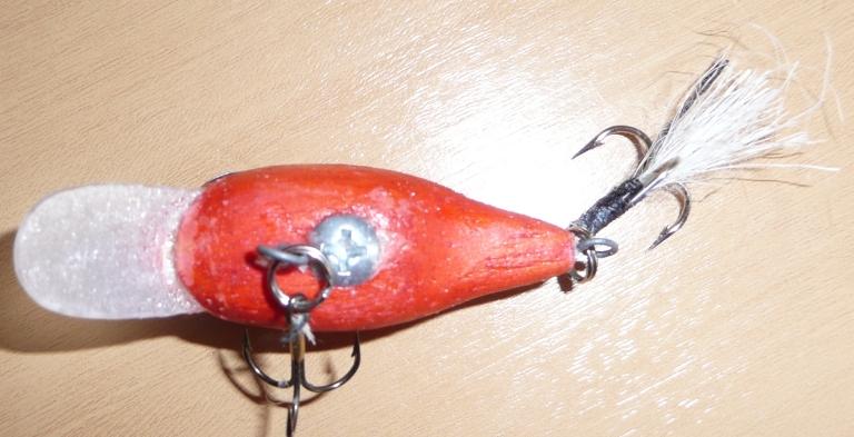 лопатка сделана из коробки спод дисков, огрузка - шуруп(сделал дырку сверлом чтобы головка шурупа не стырчала, а сделала ровный контур по воблеру)