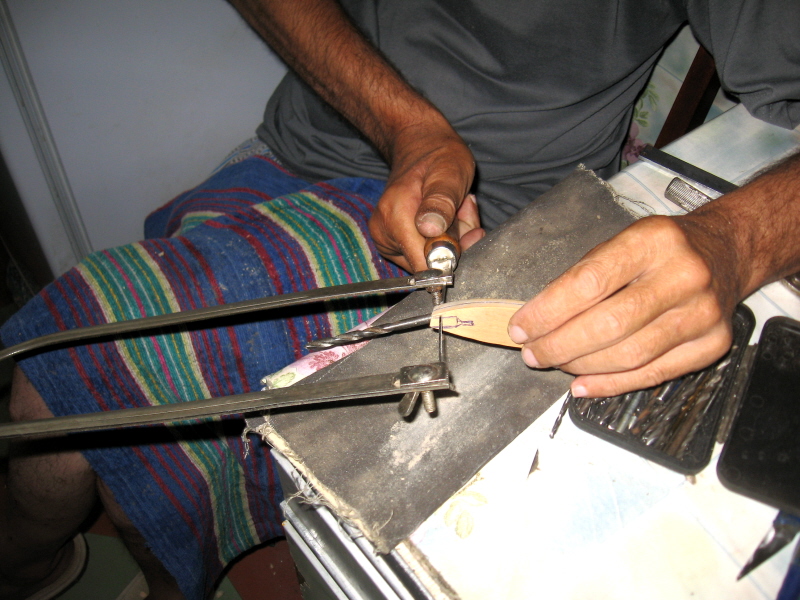 В лопатке сверлим два отверстия 1мм под проволочную (латунь) петлю и пропускаем как на картинке.