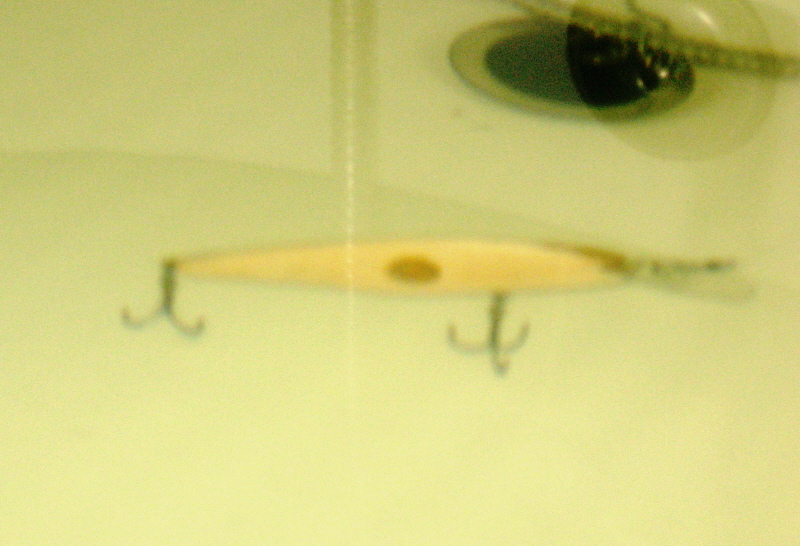 При тестах в ванной воблер показал очень размашистую игру.