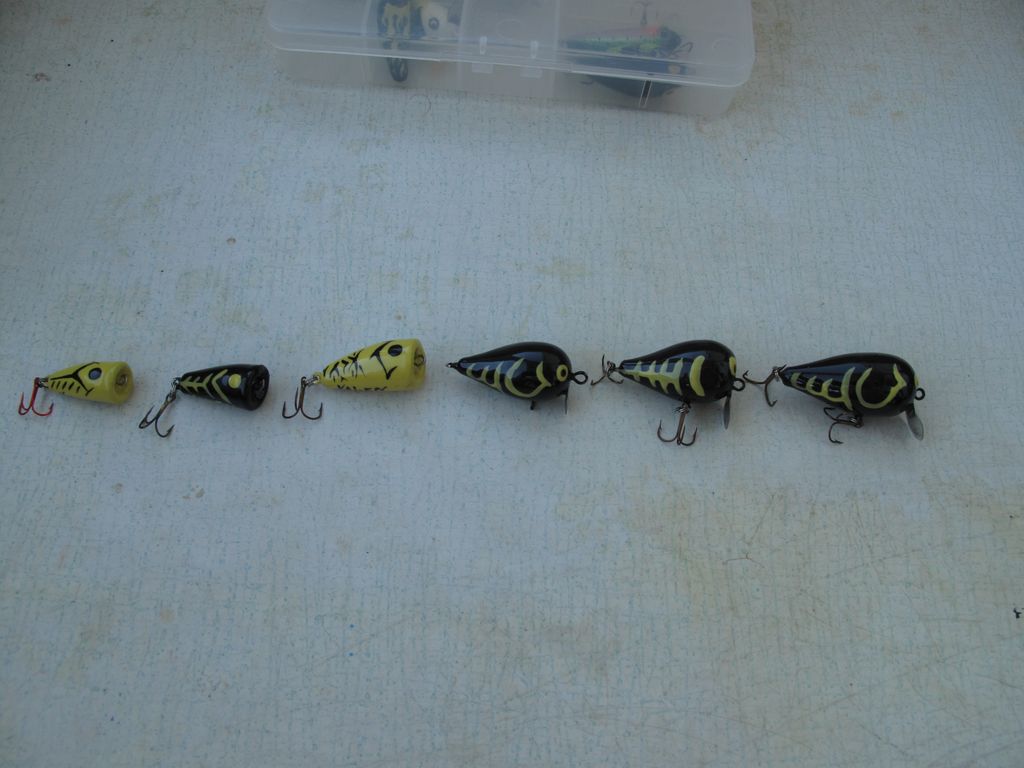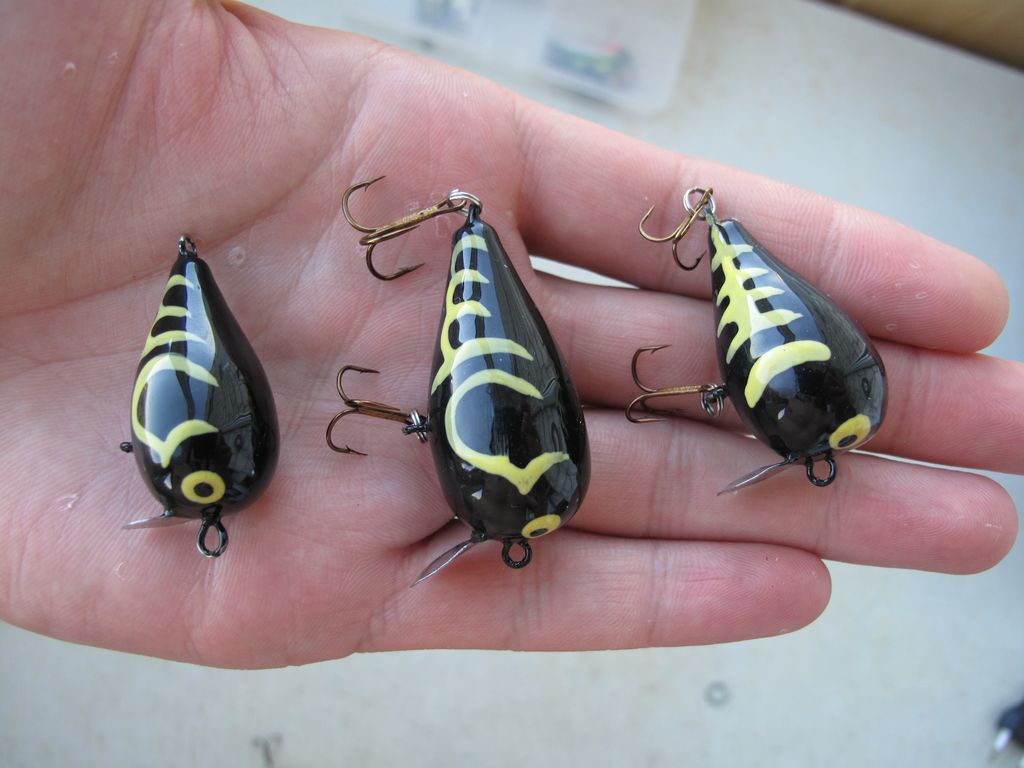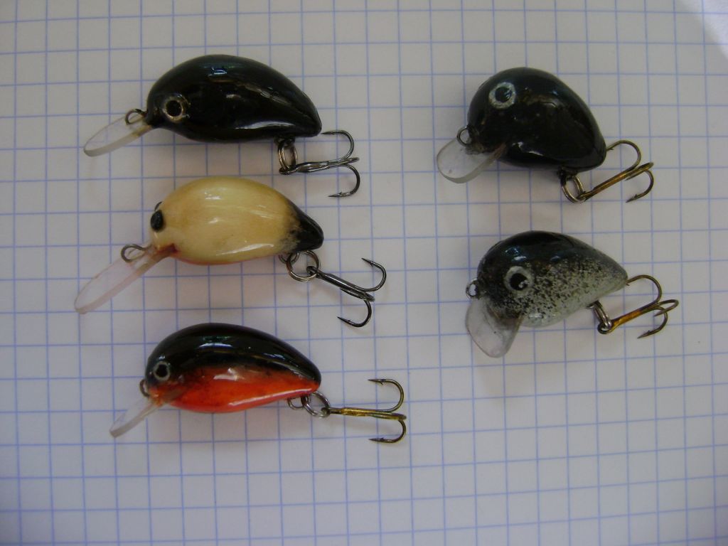 С лева: липовые вариации на беби хикори, самые достойные на мой взгляд- верхние оснащены марутовскими тройниками. Верхние два игра понравилась, при проводке в зависимости от скорости от средней до высокочастотной размашистой игры, у нижнего (тонущий) игра менее активна.