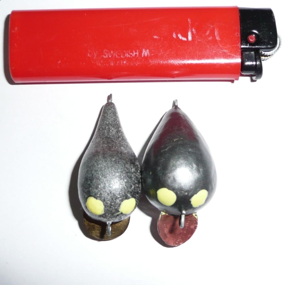 С права: пенопластовые приблуды, черный такой себе виляющий колобочек с игрой средней частоты, серый с черной спиной с самого начала не играл и виной тому высокосидящая петля, после подгибаний ожил, но лицо немного помнял, игра напоминает салмовский тини.