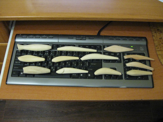 Не было возможности ответить раньше. Так вот, на первой фотке один из трех(который потемнее) ольха(остатки от вагонки), остальные воблерки из абаши.