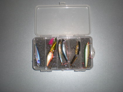 Вообще-то, неглупые люди придумали: на свою рыбацкую куртку (жилет, рубашку, футболку - нужное подчеркнуть) нашиваешь поролоновую полосу в виде патронташа и перед первоначальным заходом в воду определяешь хищника, которого собираешься ловить, дежурный комплект блесен (я думаю, пять - шесть вполне достаточно) и тройниками загоняешь в поролон. Блесна висят себе тихонечко на груди - и помалкивают. Есть не просят, ловить не мешают. И им абсолютно все равно, что ты оставишь на берегу: рюкзак, корзину или коробку. И когда надо сменить блесну - не надо ничего открывать и тем более - выходить на берег. Это так, к слову, ибо сам ловлю с лодки и с собой всегда беру ДВА ящика, которые, естественно, мне не мешают.
