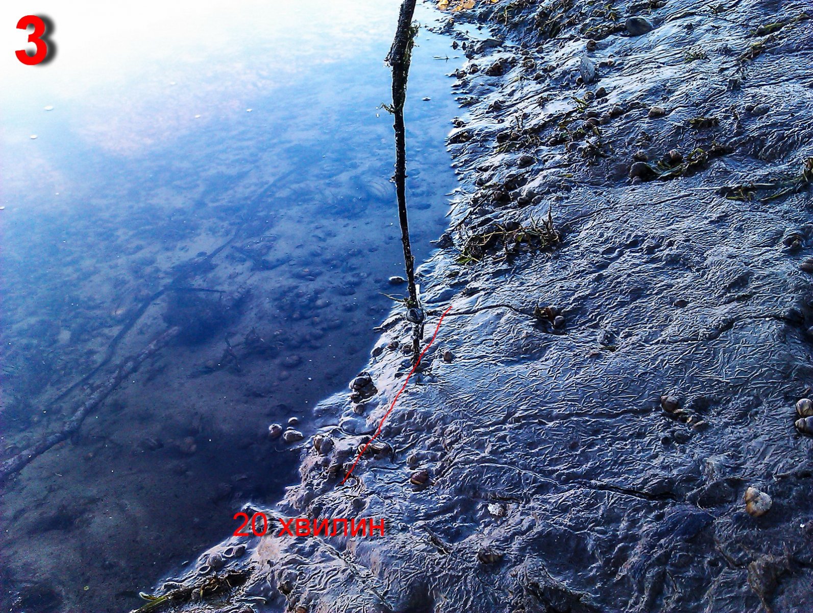 на третій фотці відмітив рівень води який впав за 20 хвилин.