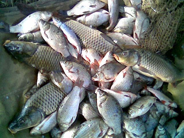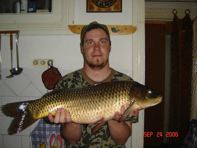 Теперь можно смело выдвигать теорию о том что карп, не имея острых зубов, глушит рыбу хвостом... Ваш карпик относится к тем которых называют "Сазан", травоядный Карп с продолговатым телом, растет до 11 кг. В отличие от Кругленьких карпиков, которые растут до 40++ Да и раз уж на то пошло и своих рыбок покажу: