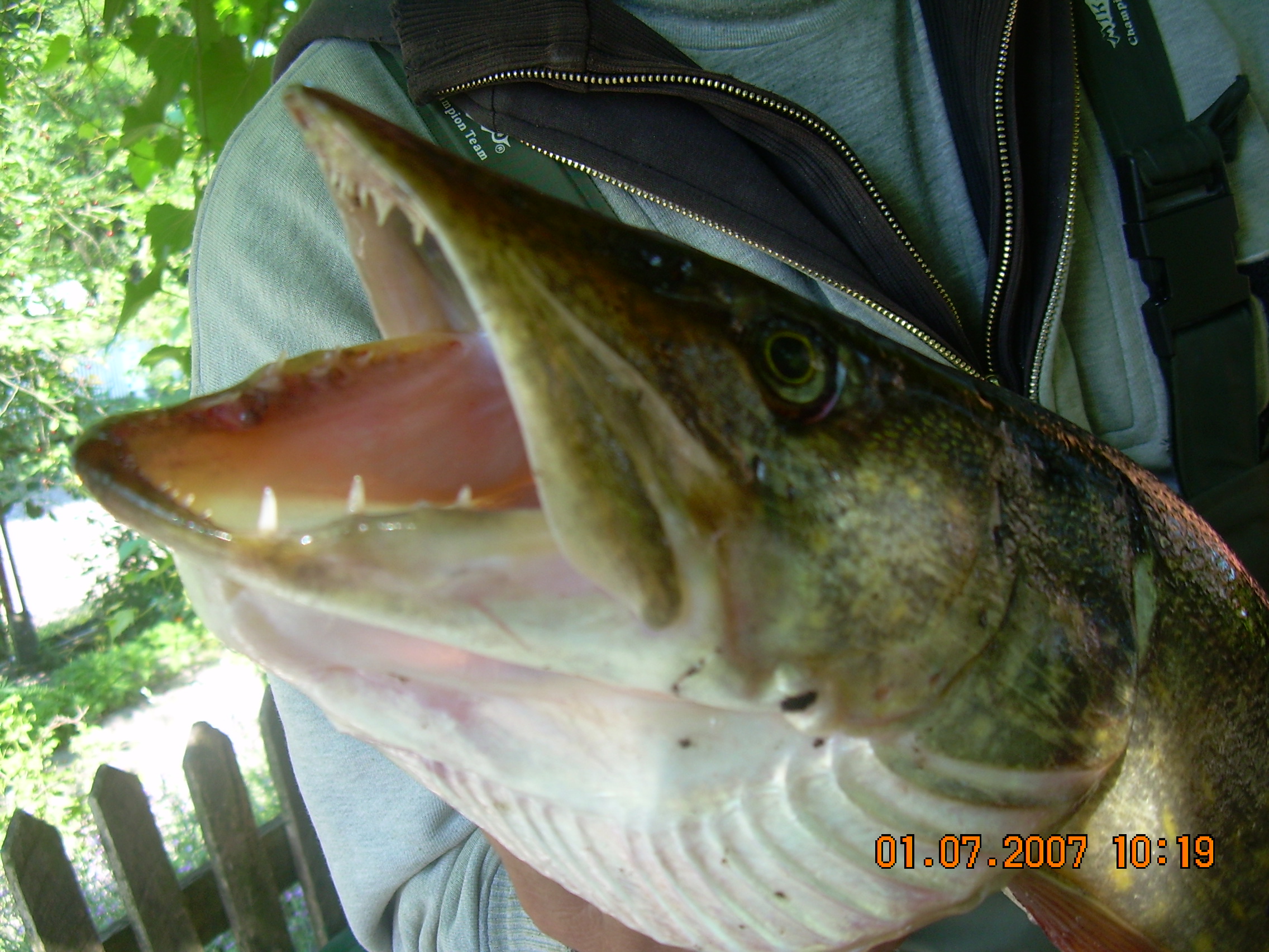 c. Деражно, став "Подвесной мост", около 5 часов утра, щука 2.350 кг. Взяла под камышом при глубине в этом месте 1 м. на колебалку Спинекс Леди 18 гр. Вторая примерно гр. - 700 (не взвешивал), спустя минут 40 на том-же месте на ту-же блесну. ЗЫ. Подробности тут http://fishing-ua.com/showthread.php?t=553&page=5