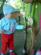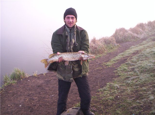 Решил похвастаться. Эта красавица была поймана 14 декабря 1997 года в дренажном канале киевского водохранилища на живца (горчак). Ловил на спининг, при том снасти были такие: леска 0,3 мм., поводок (леска) 0,25 мм., крючок №6 (по отечественной классификации). Ее вес - 6 кг., длинна 83 см., ширина - 16 см..