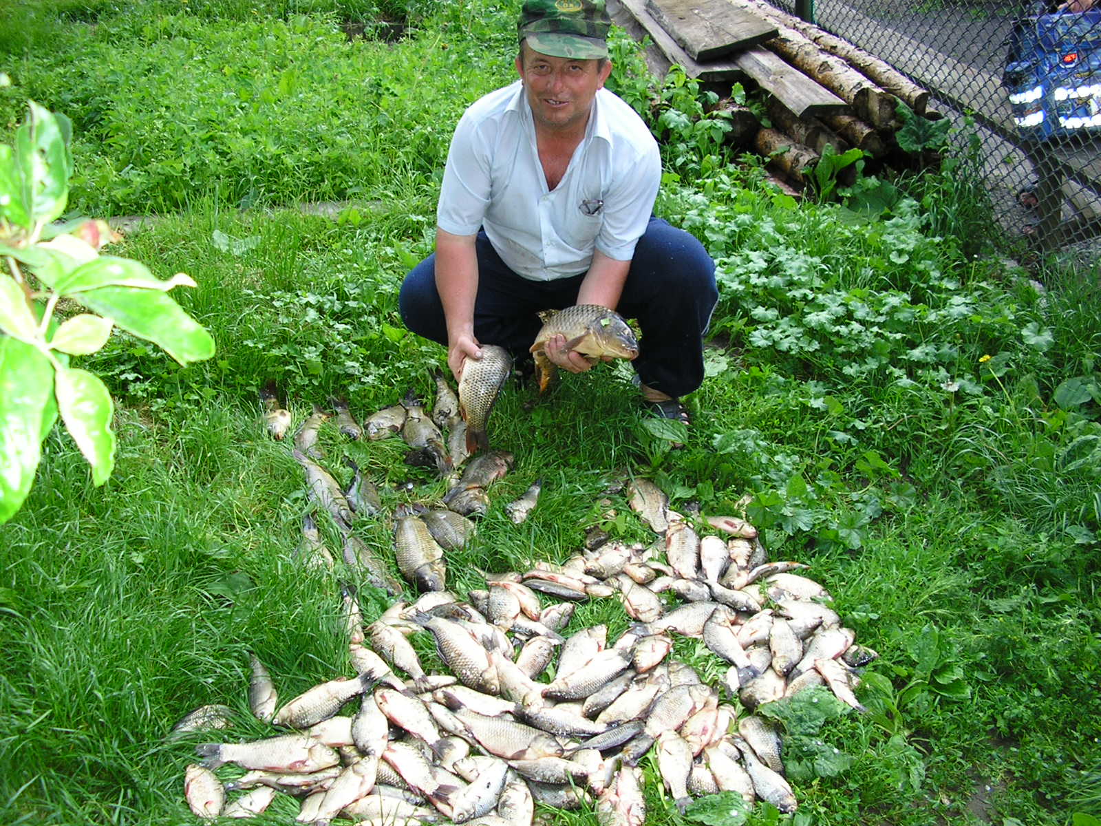 1.Зловлені зимою в Хрінниках район с.Товпижина на жерлиці 3.4 і 3.6 кг.тоді зловили за рибалку 11 щук правда остальні були менші. 2. Карп більше 3 кг. і карасі з с.Колодеж горохівського района їх було 2 одного тесть случайно не втримав як в садок клав з рук вискочив і як торпеда втік ох і отримав словесно прочуханів. 3.4. Карасі з Колодеж карпи з Холонева на день рибака ловили.(там дають ловити раз в рік на день рибака і то з 6 ранку до 9 всього 3 часа но риби там повно карпи від 500 до 3 кг.) зловили на 3 тоді 17 шт.доречі коштуе 25 грн і тільки одна удочка) 5. На Стиру на донку зловив сам десь грам 700 на фото брат, покищо мій найбільший сомік, а ще ловив на донку судака 700 грам. 5. а ракі в сетку на Стиру яку твістером зачепив добре шо мав при собі чоботи погрудкі зайшов витянув ракі забрав сетку на утилізацію. Це все шо вспів сфоткати трофейчиків було більше.