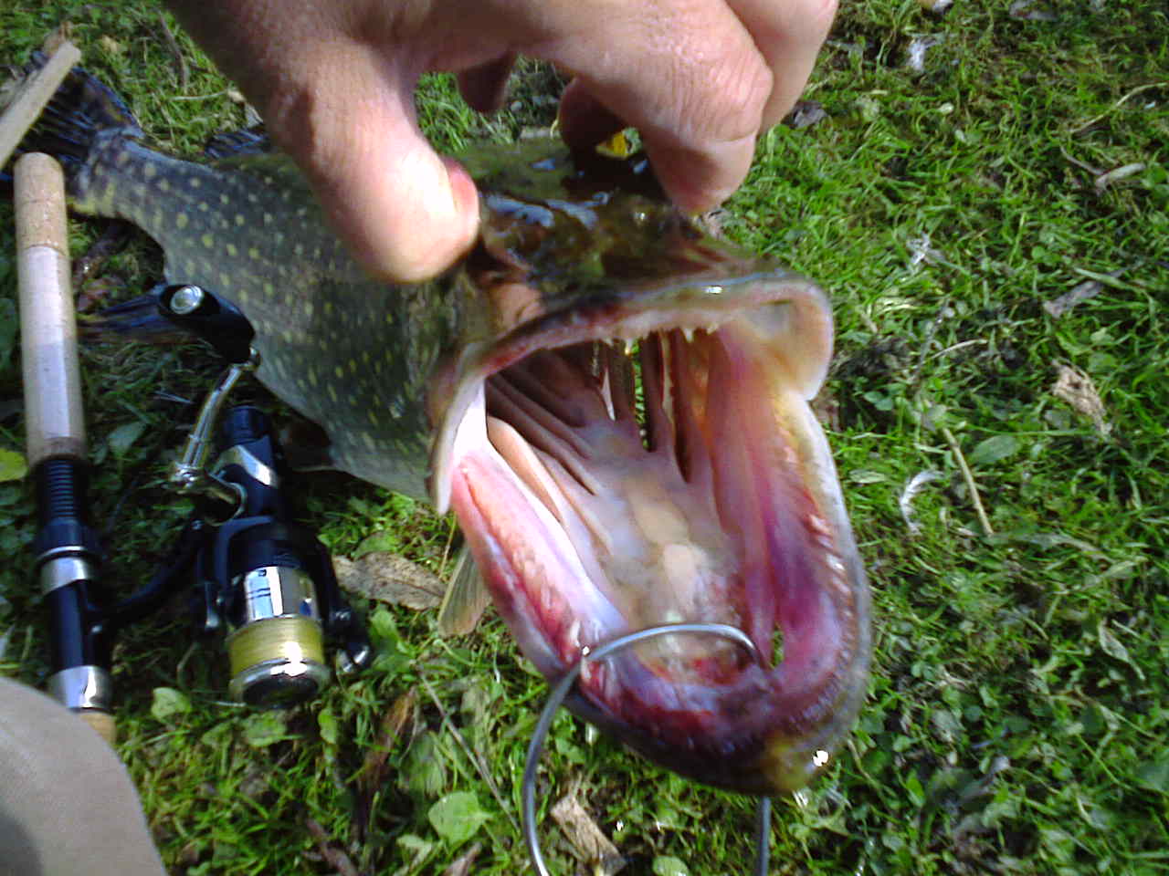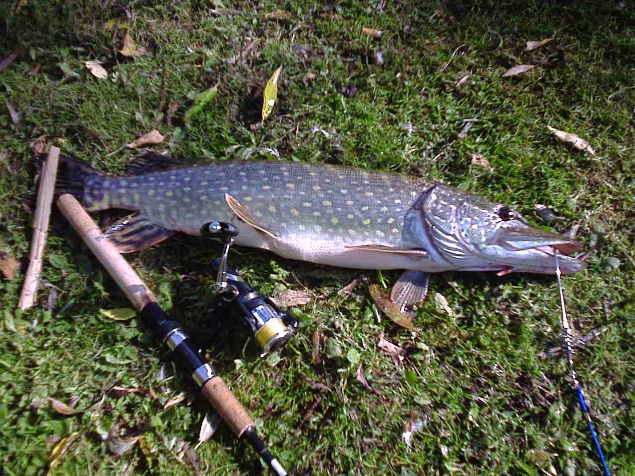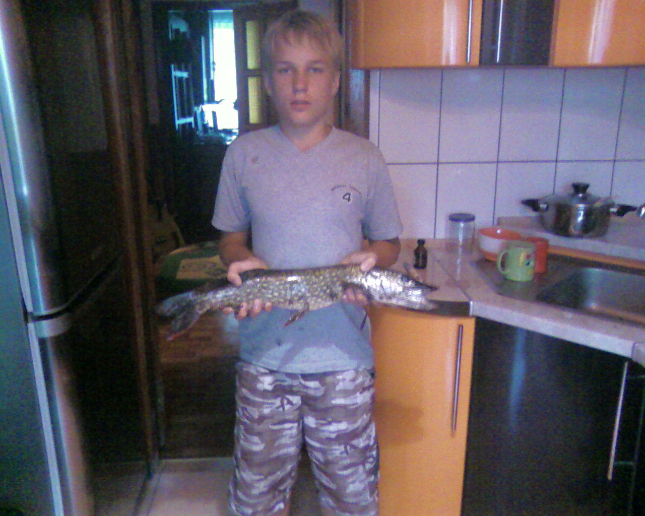 Щука 5 кг. Вот в субботу отличился. Словил крокодильчика на 5 кг. с копейками. Почему с копейками, да потому что кантер граммы не показывает. Пока что самая моя большая щука. Снасти: Эвид AVS 6.6 MLF2, Дайва Калдия кикс 2000, шнур Стрен микрофус 6,8 кг. разрывная (шнур чуть не вписываеться, но Санлайн супер ПЕ в 6 лб. весь за лето порвал), приманка третий с верху составник, точно не помню но по - моему Ривер 2 Си. Проводка плавные рывочки с паузами. До этого на него ничего не брал. Поправка, составник не Ривер 2 Си, а Роллин минноу от Лаки Джон, 8 см., 10 гр.