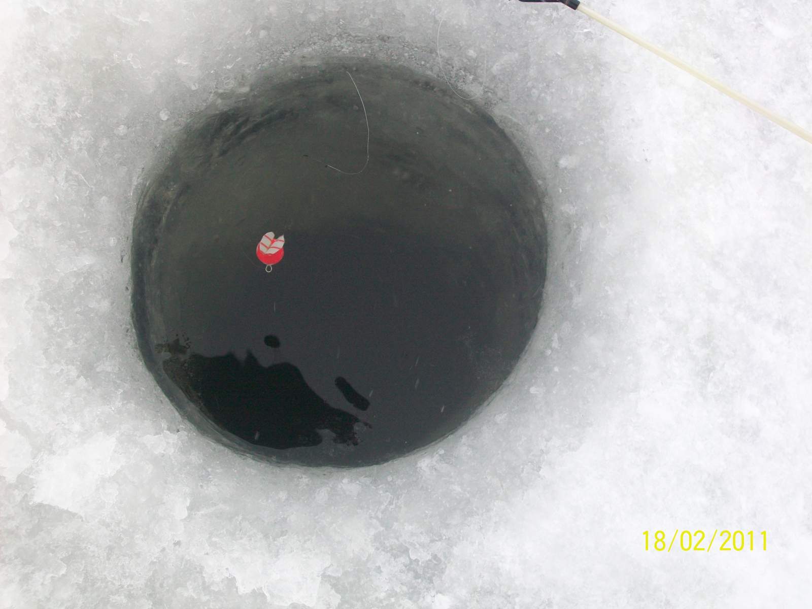 Увидев в Интернете статью Виталия Козлова, напечатанную в №5/2010 03.02.2010 журнала «Рыбк-рыбака», «Крылья над поплавком. Ни одна поклевка не должна оставаться безнаказанной» http://www.rybak-rybaka.ru/articles/96/5886/ решил себе сделать такой-же. Поплавочек в форме конуса из очень плотного пенопласта. Пенопласт покрыт прозрачным клеем(не агрессивным к пенопласту). Верх конуса окрашен красным лаком для ногтей. Диаметр верхнего круга конуса – 10 мм. Высота конуса – 14-15 мм. Колечка для крепления крылышек изготовлены с отпущенной струны диаметром 0,58 мм. Боковые колечка, для пропуска лески, изготовленные из отпущенной на малом огне, струны №1 диаметром 0,25 мм. Киль поплавка сделан из углепластикового киля спортивных поплавков – диаметр 0,85 мм. Крылышки – изготовлены из разрезанных трубочек для коктейля. Заготовки разглажены утюгом. Из заготовок вырезаны сами крылышки с помощью изготовленного специального лекала. Все остальное как гласит статья про крылышки над поплавком. Поплавок очень чувствительный, любое прикосновение рыбы к мормышке, сразу же крылышки начинают играть. При малейшем подъеме карасем наживки, крылышки расходятся в стороны, что очень заметно. Материал для крылышек действительно имеет почти нулевую плавучесть, и поэтому при подъеме поплавка, рыба не чувствует увеличение его веса и не бросает мормышку. Зимними удочками, оснащенными такими поплавками с успехом можно ловить как карася, так и леща(поклевки в основном на подъем). На первом фото поплавок в спокойном состоянии, на втором - при поклевке на подъем.