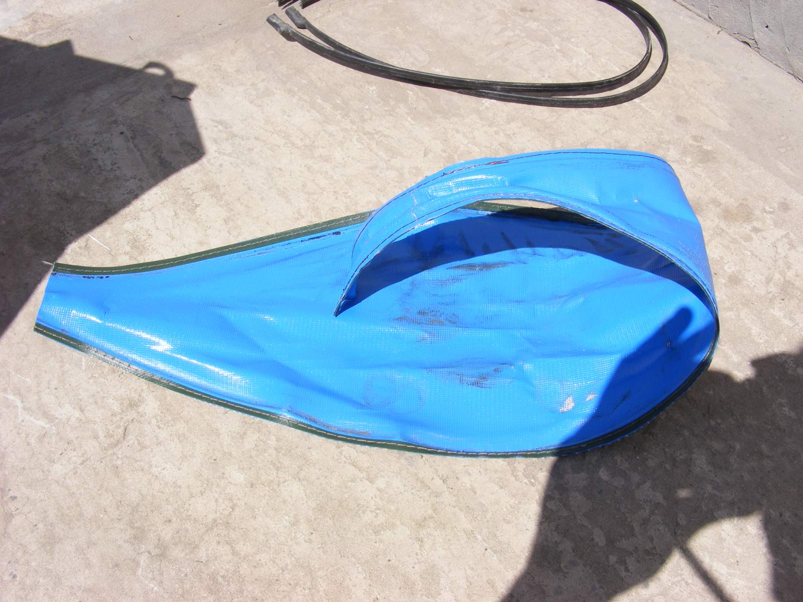 Пришлось снять ткань с насоса, далее как всегда из тентового ПВХ вырезали нужный размер, склеили и вот что вышло.