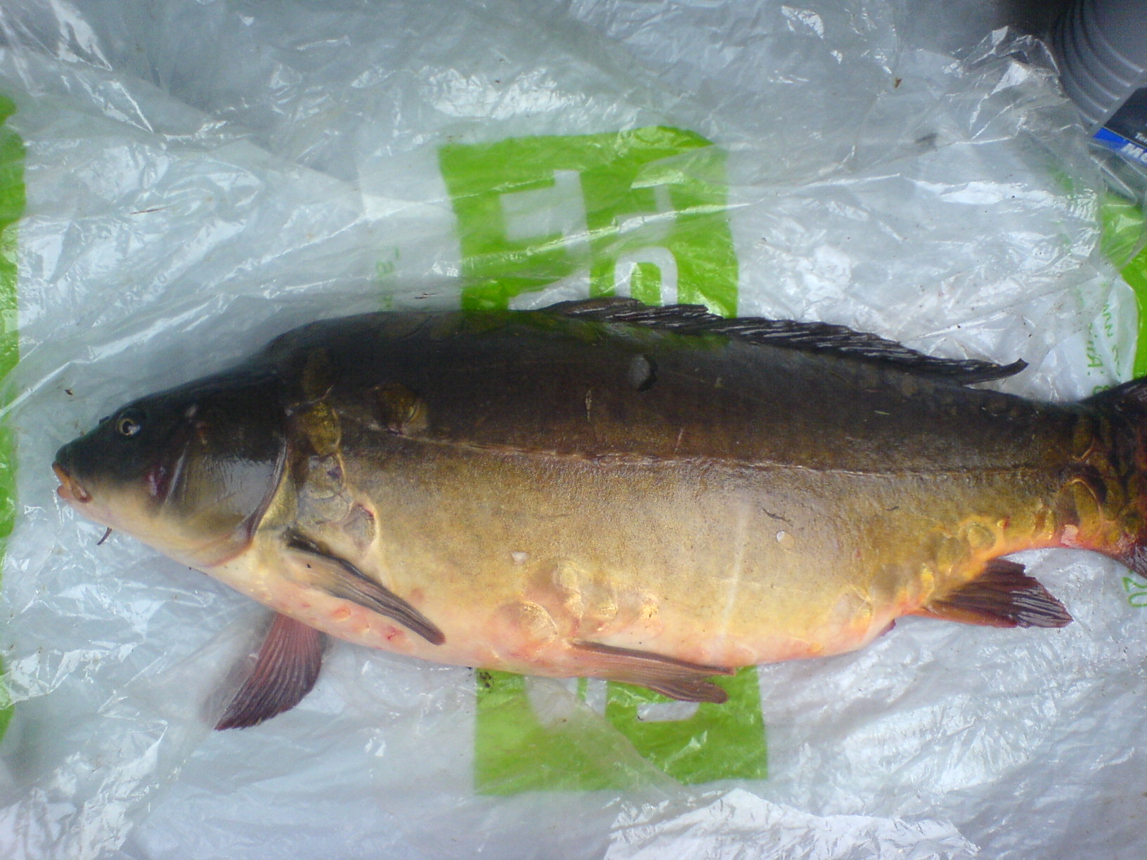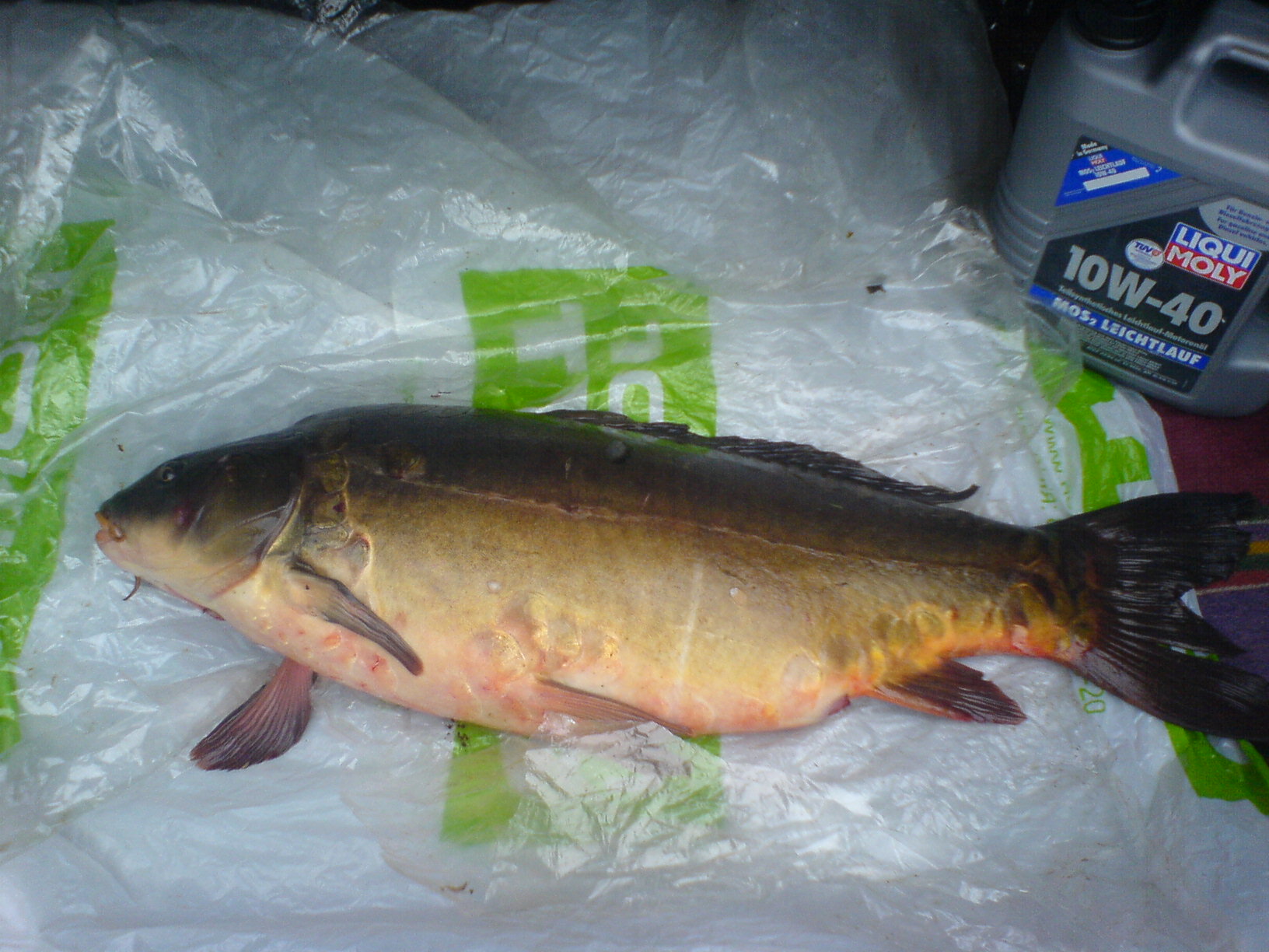 Кум приїзжав, везли трофей на хабар комусь. Короп дзеркальний, зловлений в Рівненській обл. Вага 11 кг.