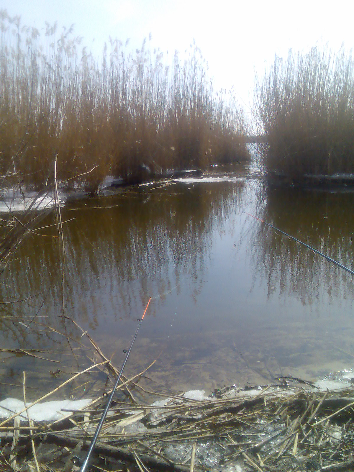 Сегодня в гости друг приехал с области, решили выйти попробовать удочки по-закидывать... Приехали где-то к обеду, Днепр почти полностью освободился ото льда.. а вот озеро на которое мы расчитывали покрыто довольно крепким льдом.. народу человек 10 на нем сидело... говорили что окунька пытаются ловить, но на вопрос про результаты, говорили - ничего не поймали.. Мы решили пойти на выход озера в Днепр.. оказалось и там лед еще метров 10 от берега.. проход пока закрыт, решили пойти в западную часть острова.. стали на днепре, нашли более мение перспективное место, но поклевок так и не увидили... по дороге назад проблеснили по кругу остров.. - ничего.. у конкурентов(щукарей) - тоже самое. Зато неплохо провели время, смочили леску... с десяток раз на деревья лазили, то за блесной , то за поплавком:)