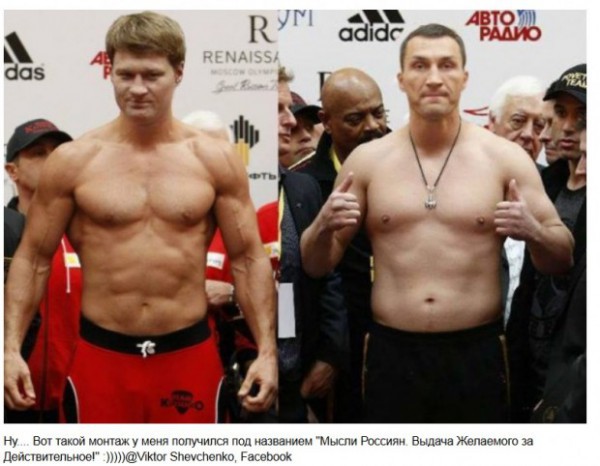 "Да товарищи! Поздравляю вас с эпической победой Русского Витязя над наймитом Мировой Закулисы жидохохлом клячко!!! Пусть и подло украденной масонами из мировой (читай жидомасонской) боксерской организации! Сотни миллионов людей видели как хохло-немецко-пиндосовская туша сотрясалась под мощными ударами Русских Кулаков, как животный ужас и растерянность охватывал ЦРУ-шных тренеров клячка! Однако в животной ненависти к России и Владимиру Владимировичу Путину, агенты мирового империализма пошли на подлог и грязные инсинуации! Была пущена телекартинка, где 3-Дэ модель клячко лупила 3-Дэ модель Русского Витязя, которую неопытный глаз не мог отличить от настоящего боя! В это время неизвестный субъект в ковбойской шляпе вколол клячку чегой то в задницу и сыпанул зело вонючего порошку в воду Русского Витязя. Простодушный честный парень глотнул той воды и помутились ясны очи, подкосились могучи ноженьки! В этот момент подлецы из госдепа и повключали взад свои камеры! Вот так, товарищи, у нас украли Нашу Победу, Победу Русского Витязя, нашего Героя, простого рабочего паренька Сани Поветкина!