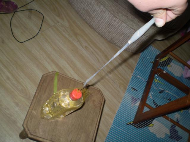 в качестве груза использовался литр жидкости крепился крючком за хвост
