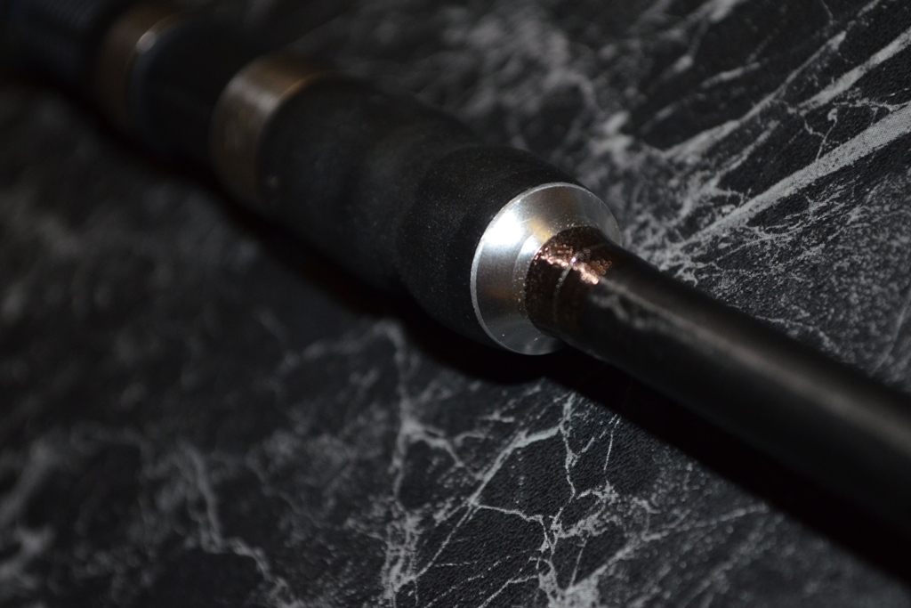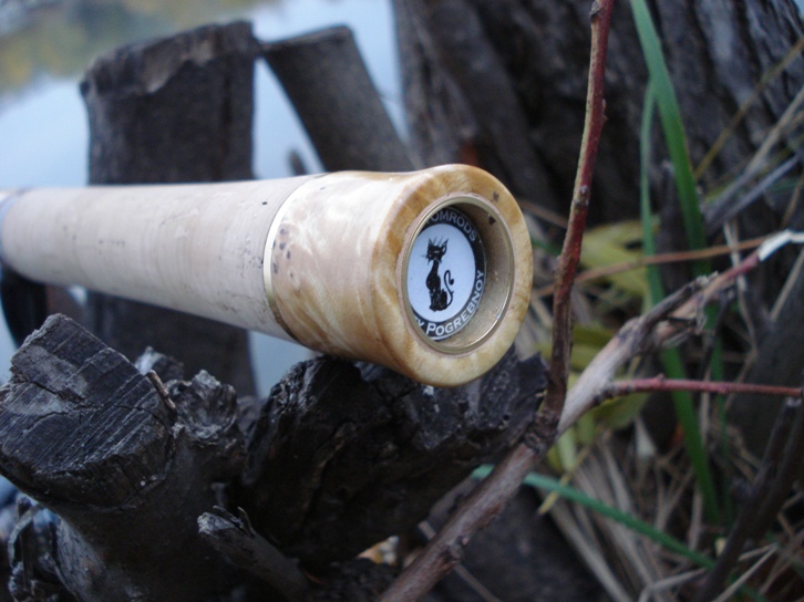 Затем, посчитал лишним, для удилища ультрайтового типа мощный бат кап. Сделал его вдвое короче, и убрал металлический набалдашник с резиновой заглушкой. Края сточил, придав феншуйный вид, и бланк заглушил легким искусственным камнем.