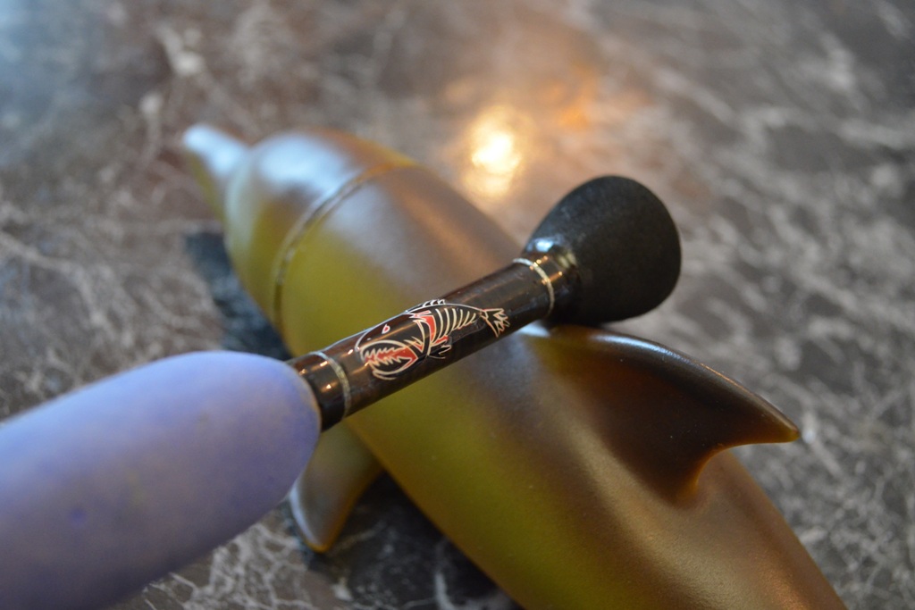 Также, решил убрать массивный форегрип, он же и был мощной гайкой катушкодержателя. Оформил в стиле гоняющихся друг за другом рыбок.