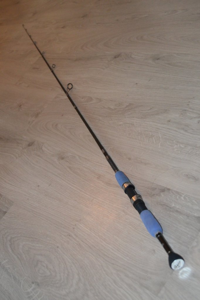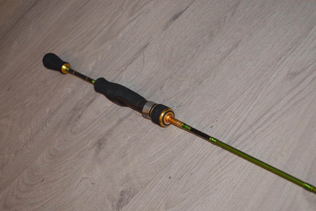 1,8 м. (5 секций, IM7). Естественно, выбирал не столько спиннинг, а скорее бланк. Родные внешние данные этой палки в стиле УАЗика, рабочая лошадка, но дизайн от лопаты. Хотя очень хороший быстрый строй, реальный тест от 1,5 до 8 грамм, и большой запас мощности. Даже сказал