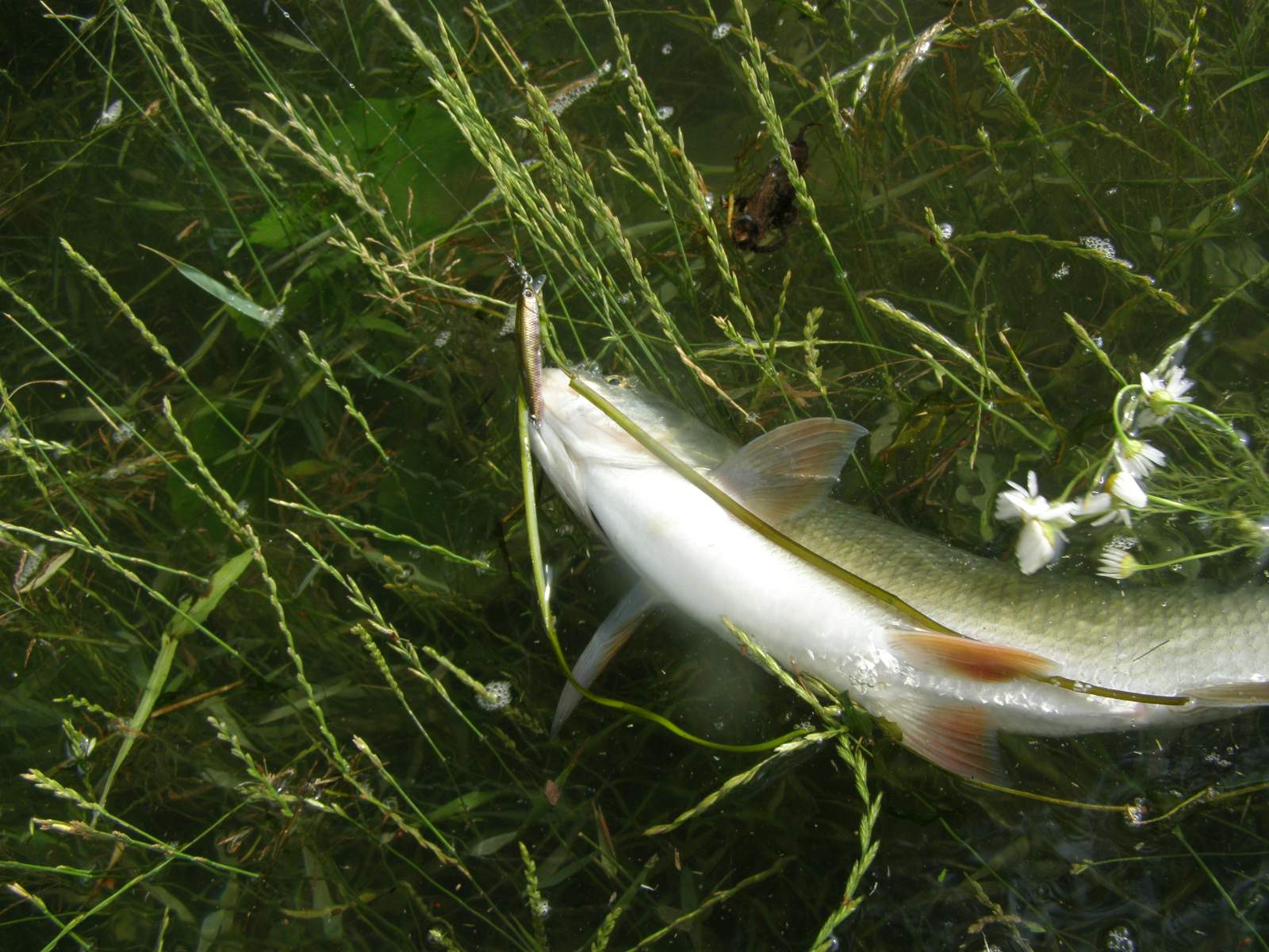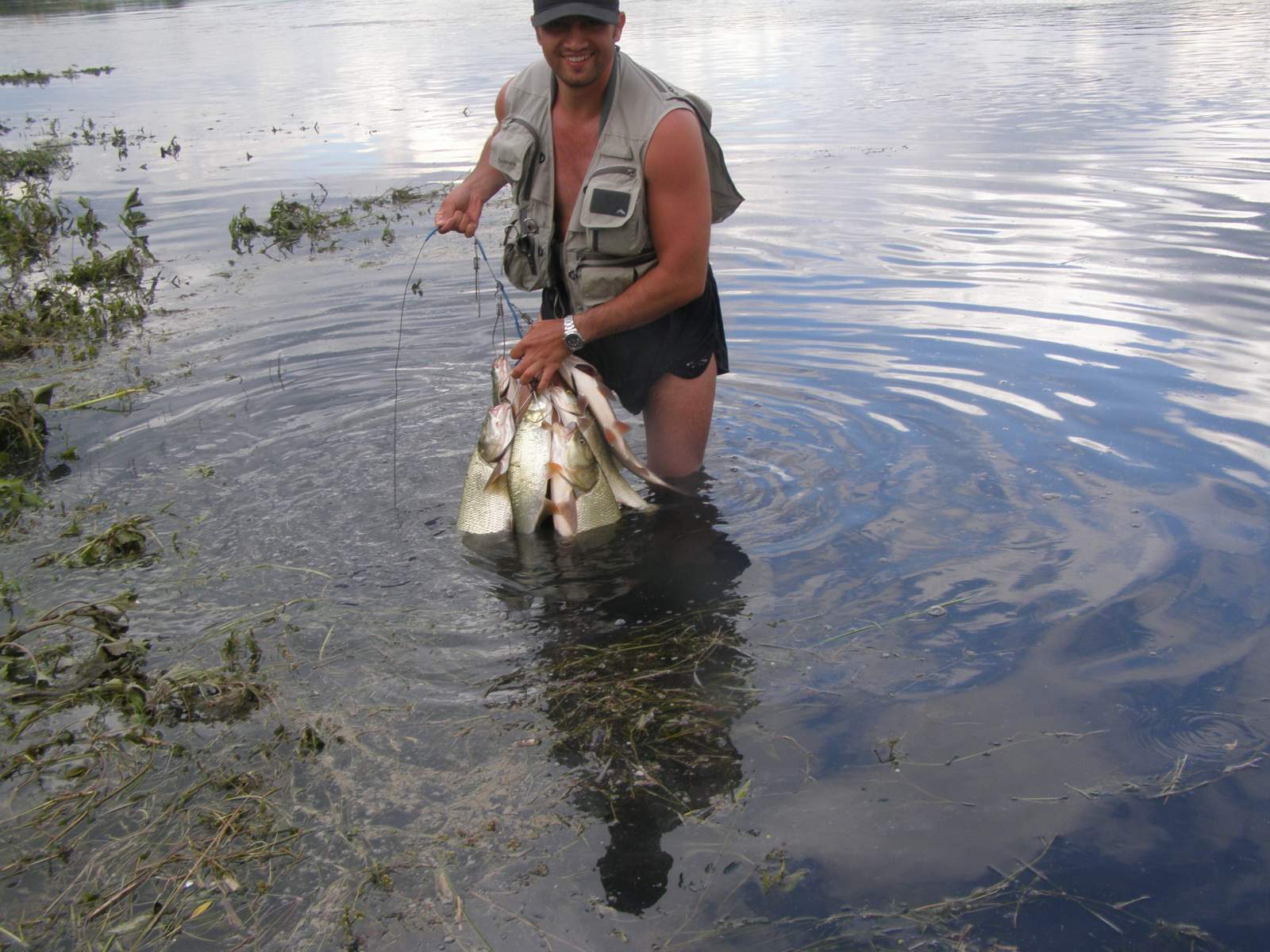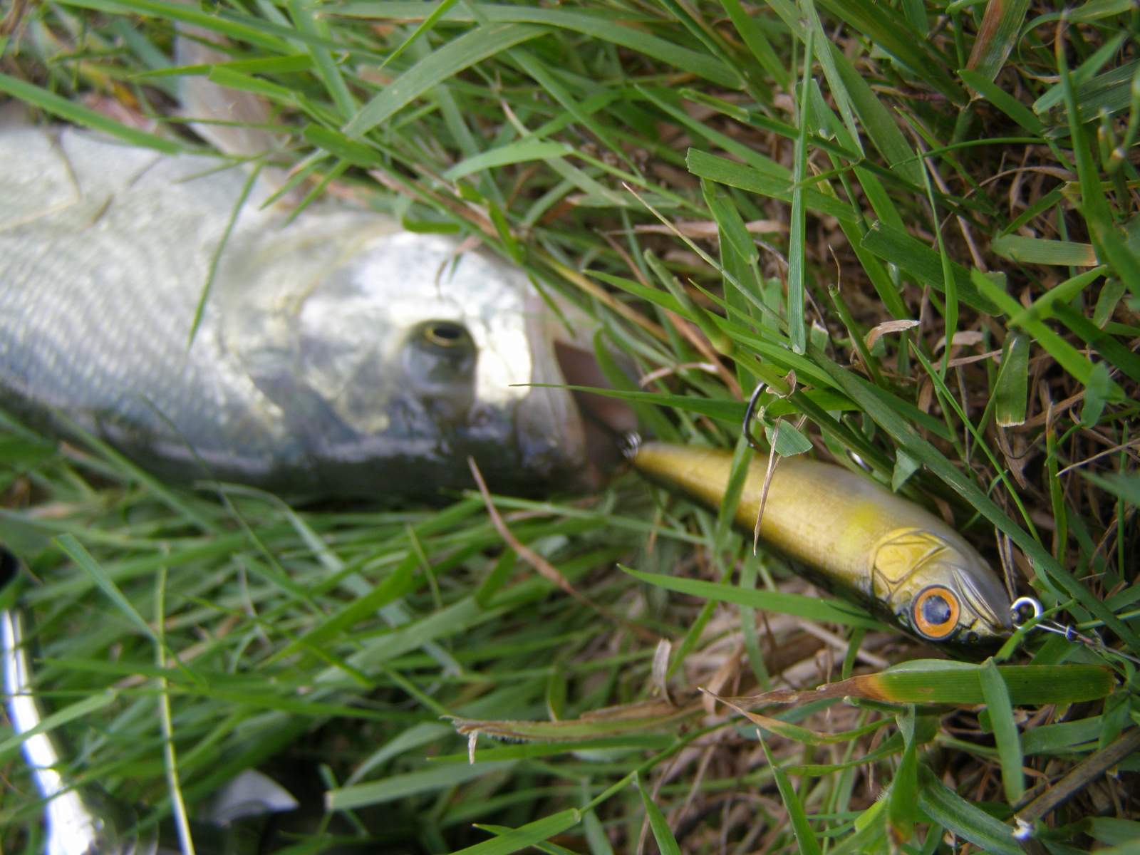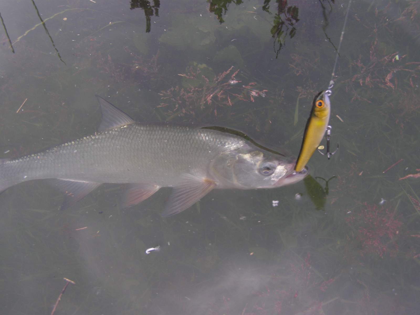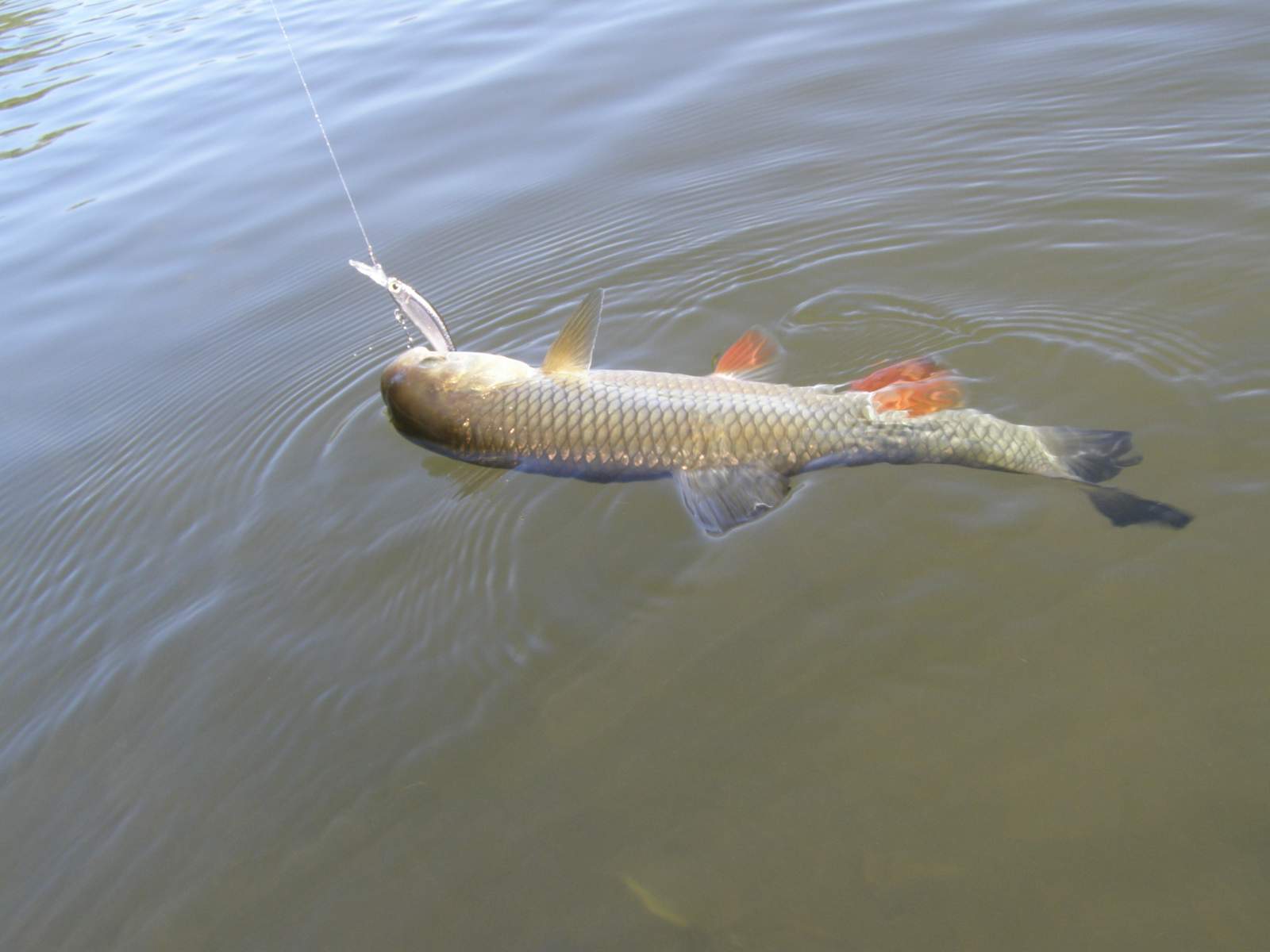 Получилось у меня еще раз вырваться на мою любимую речку на 4 дня:).Вода уже спала немного, но еще не стала в свое русло.Жерех как обычно присутствовал во многих местах хотя и не с такой интенсивностью как в первых числах.Было решено упираться в него.На первом разведывательном месте были единичные выходы шереспера не малых размеров, но увы отзываться на искусственные приманки он отказался.Зато я соблазнил на воблерок голавлишку грам на 400.Потом поставил МКджиг.Поймал парочку окуней и на очередной проводке что то посерьезней село. Через несколько секунд, на мое удивление, из воды показался подлещик до пол кила. После такой поимки было решено на следующее утро приехать половить на поплавчанку. После подлеща решили ехать домой, но по пути заскочить еще на одно жереховое место.Отцу сказал ждать на берегу пока я не проверю место на наличие жереха.Делаю первые 10 забросов и вот оно, первый жерешок под кило на берегу.Кричу отцу, чтоб разматывался тоже.Пока он разматывался я еще одного поймал и потом тишина-отец зря размотался.