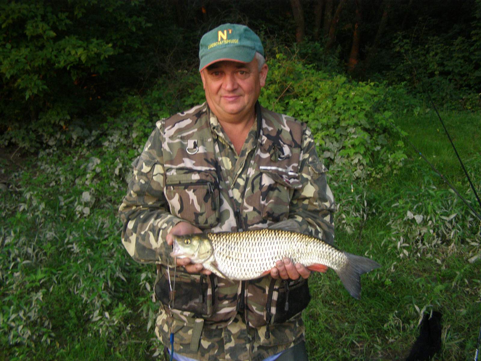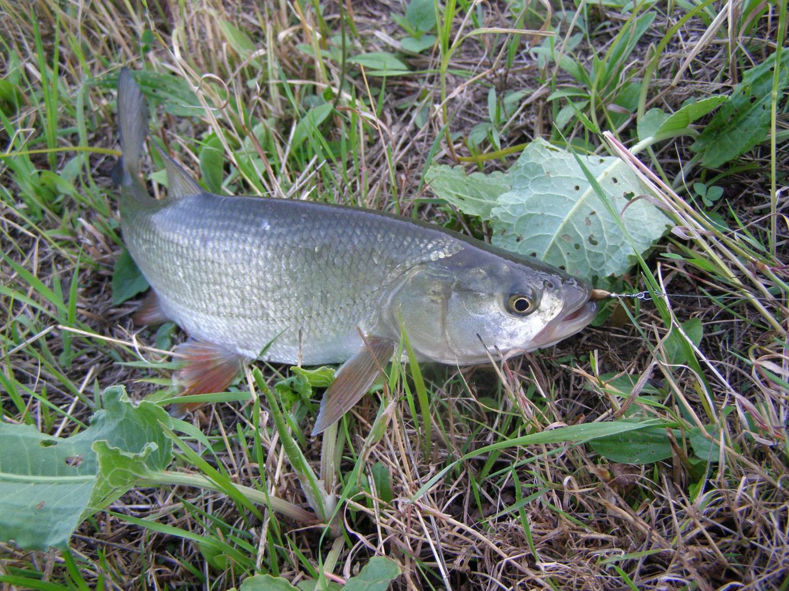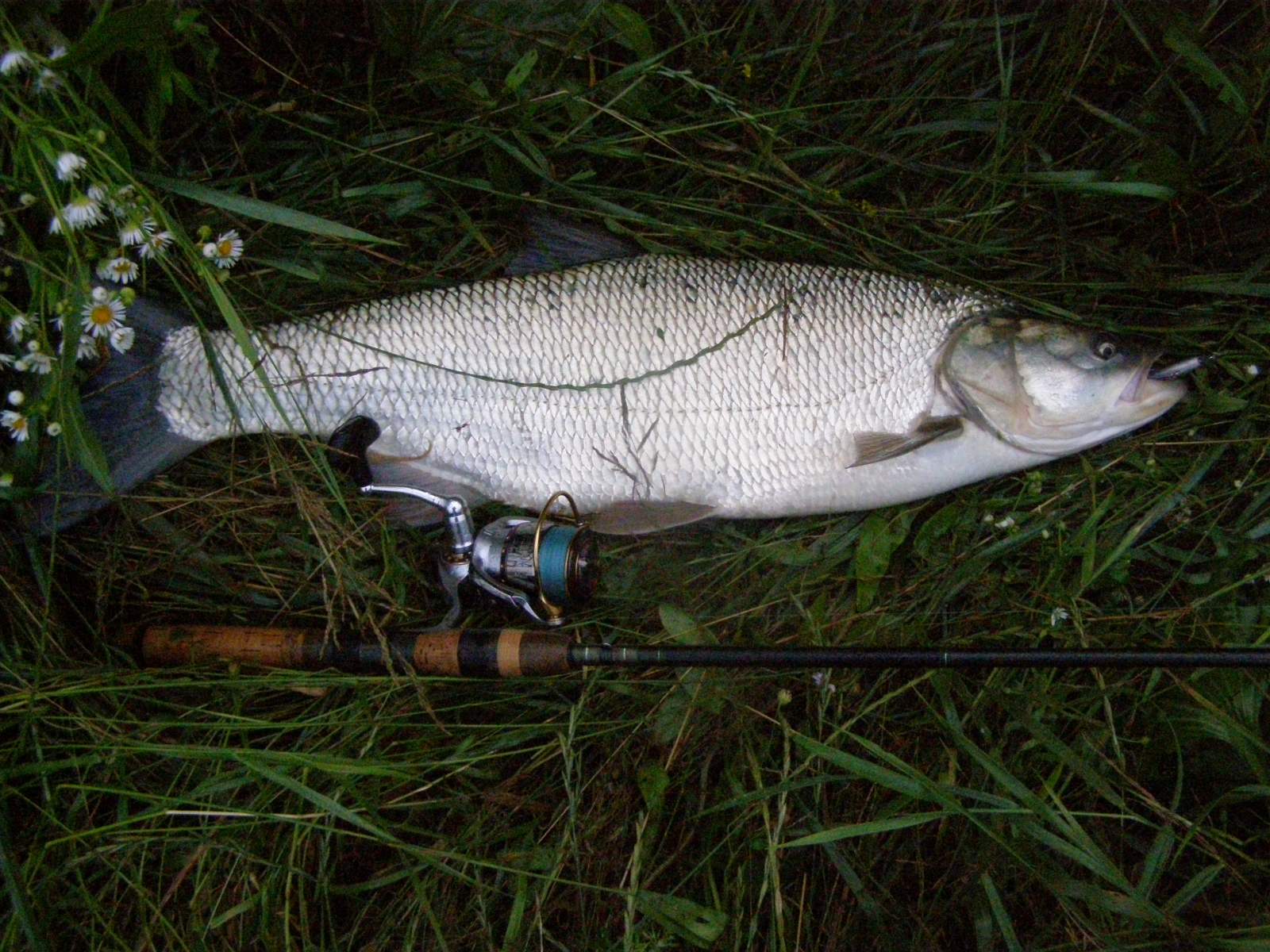 В субботу все таки я встаю в 3,30, варю прикормку и в 4,00 мы выехали на секретное место.На месте мы были первые, пока темно я размотал все снасти, закормил место и стал ждать рассвета.Отца же послал покидать на хищника(он плохо видит, поэтому ое на поплавок мог ловить когда уже хорошо видно). Сам же еще в сумерках стал ловить.Поклевки последовали сразу, но размер совсем не радовал:((плотвичка на пол ладошки).Когда стало уже сетло подошел отец, сказал, что был один хороший удар, но...:(нэ поймал:).Становится он возле меня и ловит тоже на поплавок.Тут на одной из своей проводки ничем не примечательная поклевка, подсечка-говорю бате, что то вроде чуть больше и как только я это сказал как потянет меня!!!.Леска то 0,14, боязнь была только за то, чтоб рыба не ушла в траву.Через минут 5 он первый раз показался из воды-лобатый был не слабый, обхватить его рукой я не мог.Еще минут 5 борьбы и я взял его под жабры и вытянул на берег.Весы всегда со мной и показали 2,5кг.Если мне память не изменяет, то это мой новый рекорд по голавлю(раньше был 2,2кг).После этого голавлика тишина и у меня и у отца.Часов в 11 решаем ехать домой, но по пути опять заскочить на пару забросов по жереху.Не знаю, может я и в правду в детстве много ел того самого или еще чего, но снова за пол часика я ловлю два жерешка и мы едем домой.