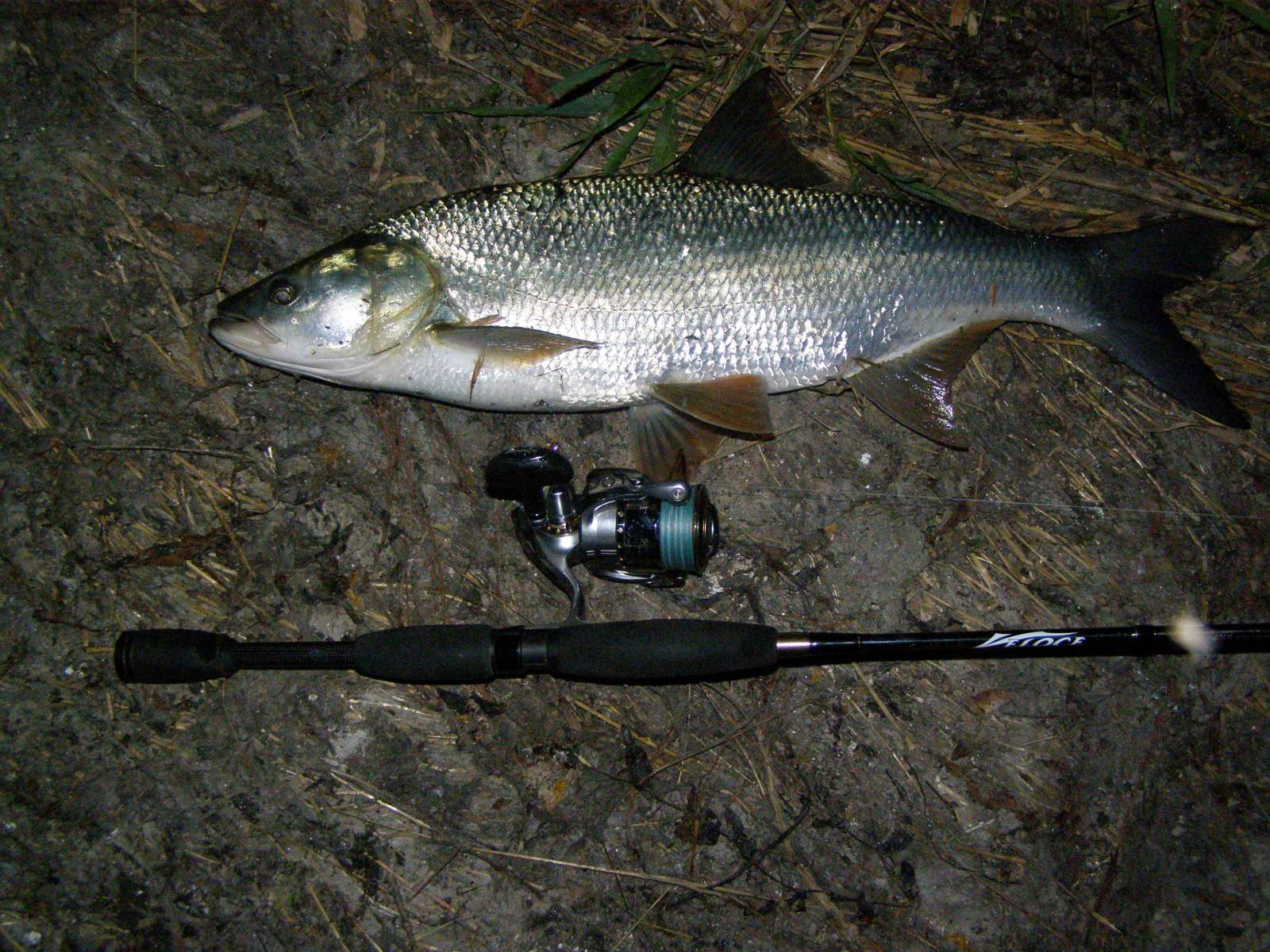 Отоспавшись дома, предлагаю отцу выехать на вечерне-ночной клев:) он соглашается и в 20,00 мы выехали на Днестр.На этот раз отца было до темноты три удара и одного грамм на 400 он поймал-ему уже нравится.По темноте решаем выйти на перекат, но там уже стоит один местный спирингист с кастмастерами по 28гр и шугает моего жереха на середину Днестра.Стаю с отцом выше него, захожу немного дальше и бросаю свои козявки потихоньку:).И вот на очередном забросе, почти на максимальном выбросе спиннинг резко сгинается в дугу, трещетка визжит и жерех делает на струе такую красивую свечку.Люблю я такие мгновения, сердце аж замирает.А еще люблю мгновения когда ближе стоящие спирингисты начинают быстренько делать забросы в то место где я взял свою рыбу.Жерех кстати потянул на 2кг;).После него еще с 15 минут покидали и решили что хватит.