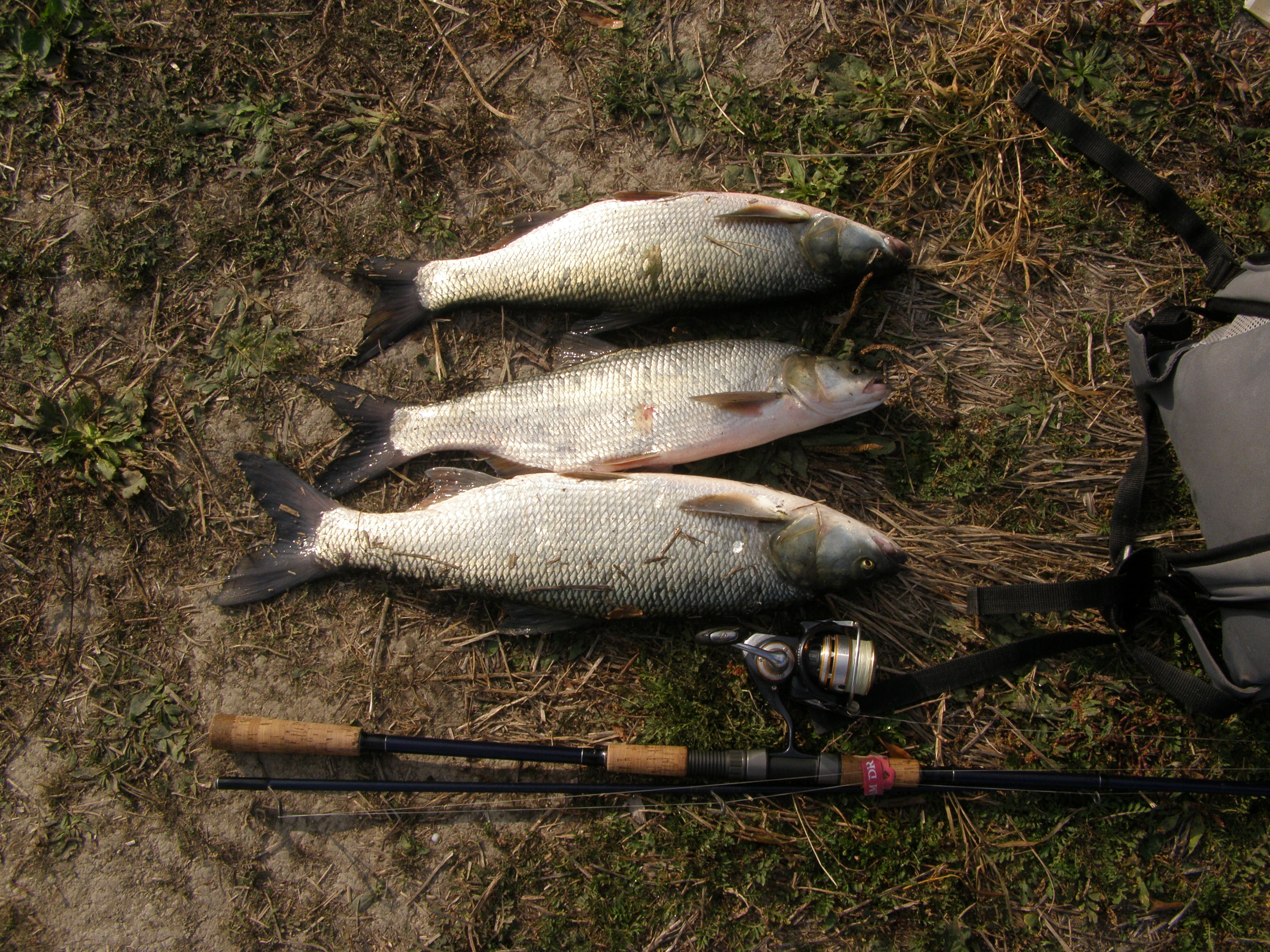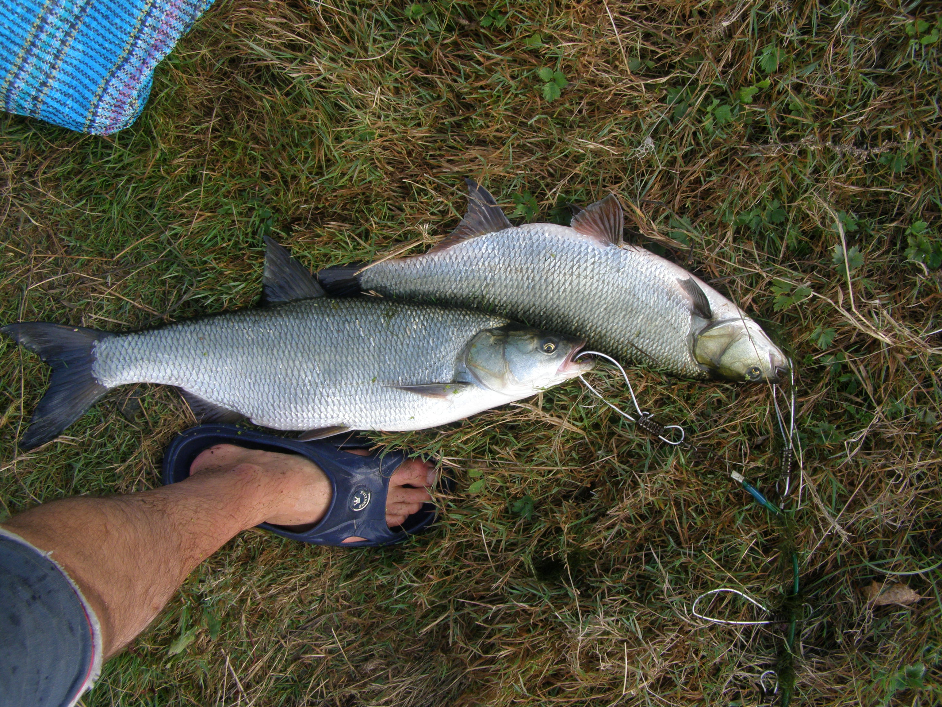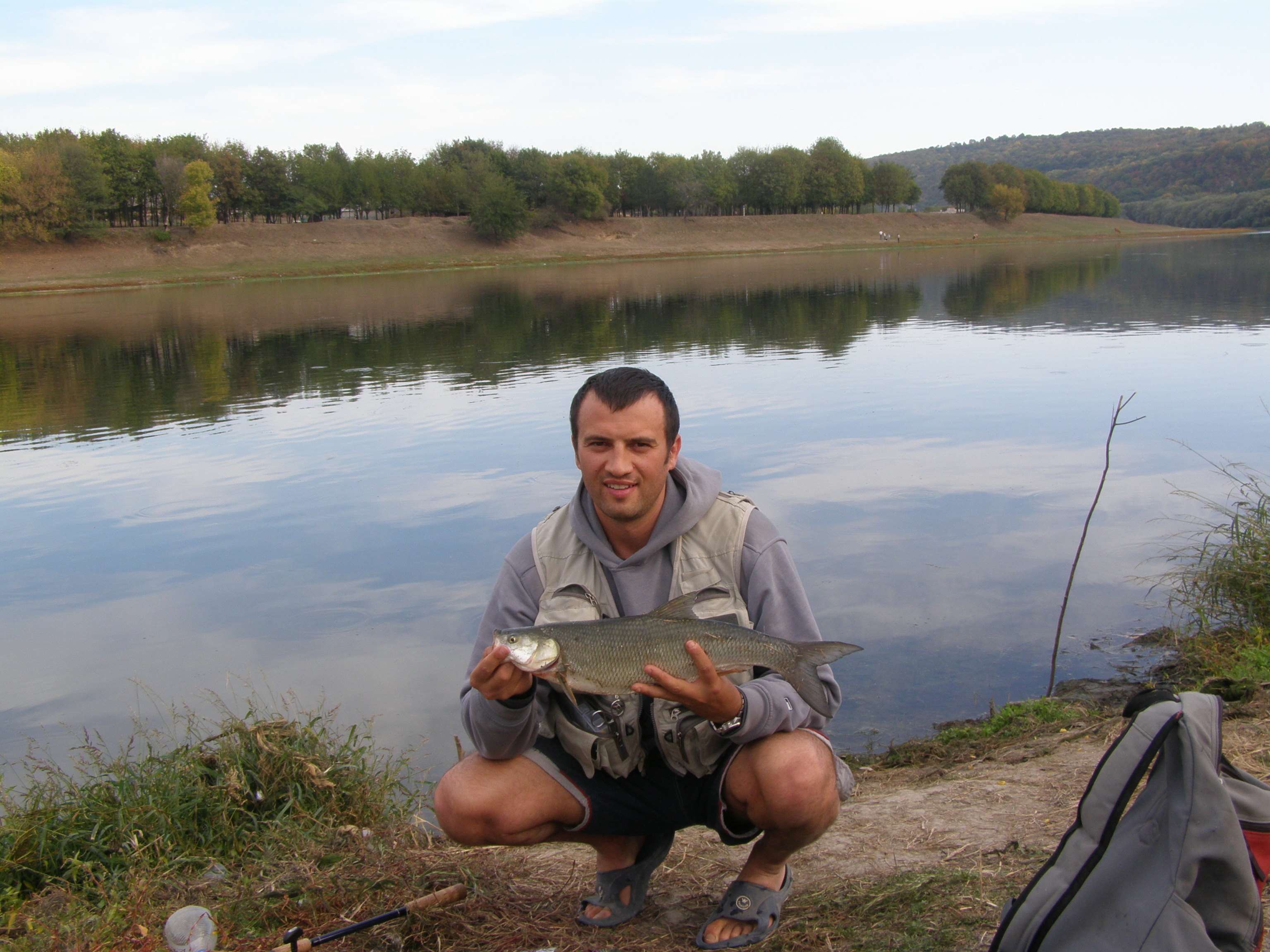 Позавчера опять побывали на том же месте Днестра. Ой кажись меня затягивает :)! Бесподобный и немножко даже жутковатый водоемище! Когда завез груз от резинки и пристегнул новую полную бобину лески, до дна ушло где то метров 30 %)! Устал держать в пальцах. А рыбы в этот раз почти не было. Только когда уже собирались товарищ вымолил пять подлещиков. А в предыдущий вечер чтобы сварить уху пришлось взять вот тоаких четыре (думаю жерешки):стыдно:, каюсь , но их тьма там. Да простит меня батюшка Днестр!