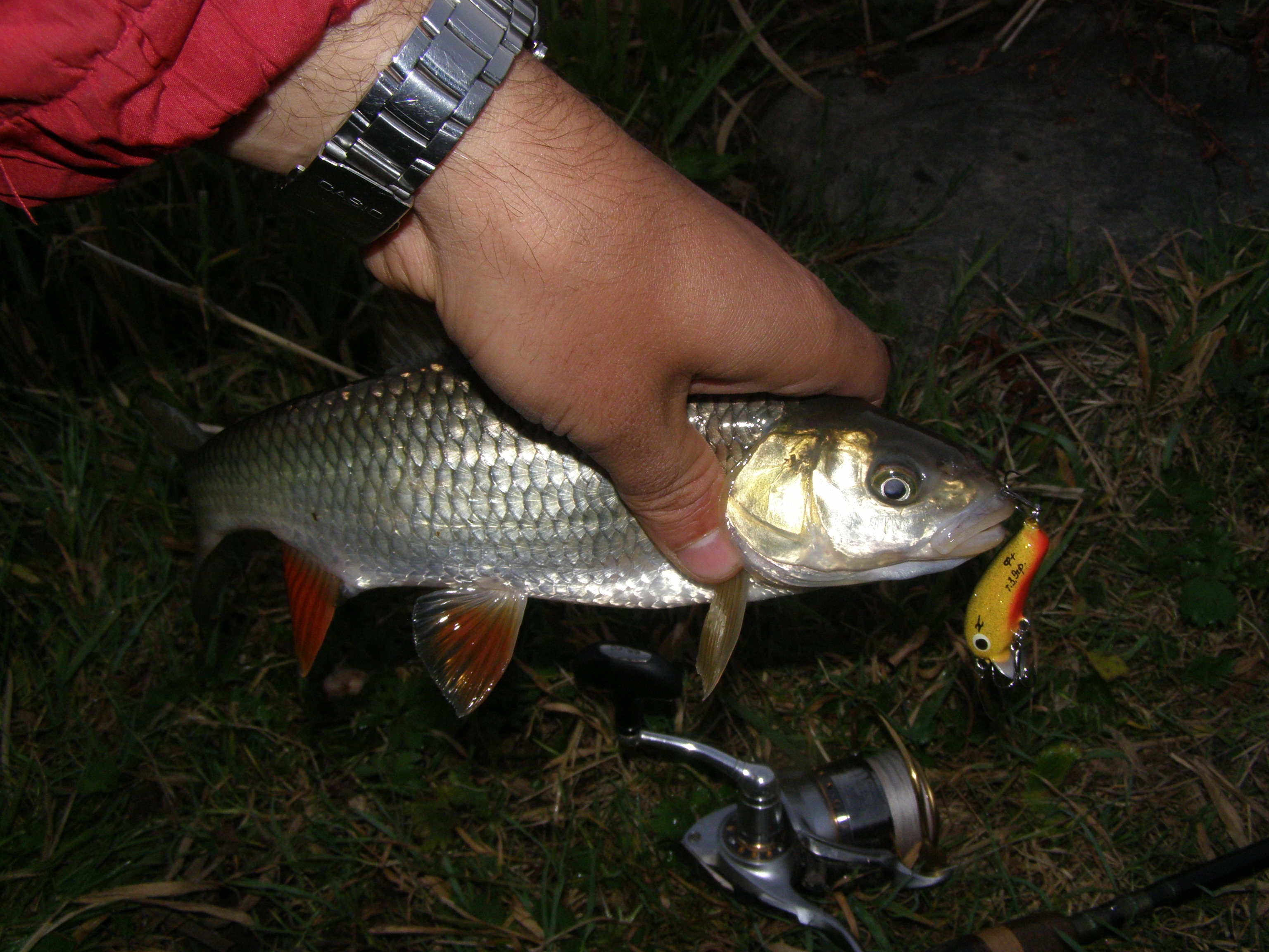 Вечером я заехал за отцом на работу и забрал его, на место ловли мы приехали уже всем составом(Серега приехал). С жерехом повезло только мне, соблазнил одного на 2,3кг. С первого удара он чуть не выбил у меня из рук спиннинг, я подсек и глухо, но через три-четыре оборота догнал))).