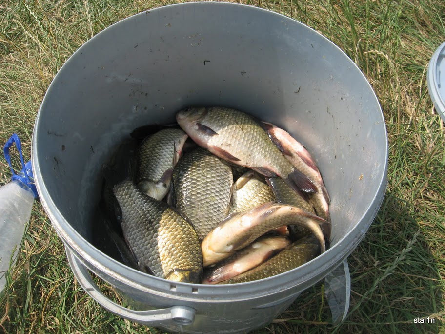 два слова про місце лову: при в'їзді в Корець біля біля посту ДАІ повертаємо наліво, їдемо десь до кілометра паршивенькою дорогою до величезного бетонного напису "КОРЕЦЬ" і відразу біля нього повертаємо наліво. метрів 500-600 і ви біля ставка. а тепер сам звіт: Компаньйони: Ярослав Пограничний, Олексій Федоришин Погода: день виявився дуже гарячим, небо безхмарним, вітру майже не було, тиск стабільний 980гПа Час ловлі: з 05:00 до 11:30 Місце: північно-західна частина ставу, на невеликому обривчику. Зловлено: 25 карасів, 1 маленький дзеркальний карпик. Наживка: опариші(хоча пробували на все, але клювало лише на опариші). Прикормка: власного виробництва з додаванням консервованої кукурудзи. В прикормку налив ароматизатор FishDream "Big Fish" Снасті: фідер, метод, вудка, спутнік. Начитавшись інформації в Інтернеті я вирішив спробувати порибалити на новому для себе місці, на ставку поблизу міста Корець. Колега на роботі теж туди їздив у минулі вихідні, і сказав, що рибалка не погана. Отже, підйом в 02:45, швиденько пакуємося і в дорогу. Дорога не близька, не менше години їзди. Їхали в суцільній темряві, як прибули на місце то почало вже сіріти. На КПП нас зустрів власник ставу Микола Захарович, сказав, що вчора клювало добре. Оскільки ми тут вперше і місці зовсім не знали, то обрали для риболовлі місце повністю вільне від дерев та кущів. Там був лише мінус в тому, що до води потрібно було спускатись з метрового обривчика. Тому підсачувати рибу було проблематично. Я швиденько замісив прикормки, розклав фідерочка і закинув з десяток кормушок в одну точку, в метрах 50 від берега. Також закормив місце зовсім під берегом для поплавчанки. Першого карася(на вигляд грам 150-200) я не зміг взяти, бо полінився взяти підсак. І він зірвався при спробі підняти його на обривчик з води. Далі я брав карасів лише підсаком, а оцей перший виявився найбільшим карасем за всю рибалку. Риба клювала дуже специфічно, я вже й відвик від таких ніжних покльовок. Кінчик майже ніколи не загинався сильно, лише потяжки по сантиметрів 10-15, а вірнякові покльовки було у переважній більшості в берег! Це було звичайно погано, бо я не завжди міг засікти рибку. Я закинув всі свої снасті, поставивши всі можливі насадки. Клювало лише на опаришів, правда було декілька подьоргувань кукурудзи, але то навіть покльовкою важко назвати. Під берегом на вудку якась мілюзга(думаю, що це синька) постійно тягала хробака. Набагато пізніше(десь о десятій тридцять) я на цю вудку під берегом на кукурудзу впіймав маленького дзеркального карпика. Олексій погано налаштував фрикціон на своєму фідері, при черговій покльовці ми всі перелякались, що він тягне щось пристойне. Я навіть відео зняв: У людей по ставку(переважна більшість - місцеві жителі) взагалі кльов був дуже і дуже поганий. Один чоловік сказав, що тут клює часом набагато краще. Приблизно о дев'ятій ранку у мене сталась покльовка на фідер(наживка три опариші): кінчик трішки потягнуло до води, сантиметрів на 2. Через три секунди ще на 3 сантиметри. І потім ще більше потягнуло, і знову зупинилось в такому положенні. Я такого раніше мабуть і не бачив ніколи, як завжди плавно зробив підсічку. О Боже! Яку ж важкість я відчув, здавалось, що на тому кінці шнура знаходиться якийсь запорожець . Я помаленьку почав його тягнути з води методом виважування: піднімав фідер прямо догори, а потім виби