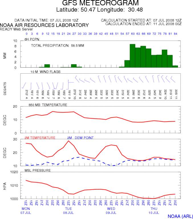 Погода по Киеву. Таки да! Сегодня ночью будет сильный дождь - предварительный прогноз подтверждается. При необходимости могу еще выкладывать метеограммы таких городов как Одесса, Львов, Севастополь, Харьков. К огромному сожалению других в списке нет.