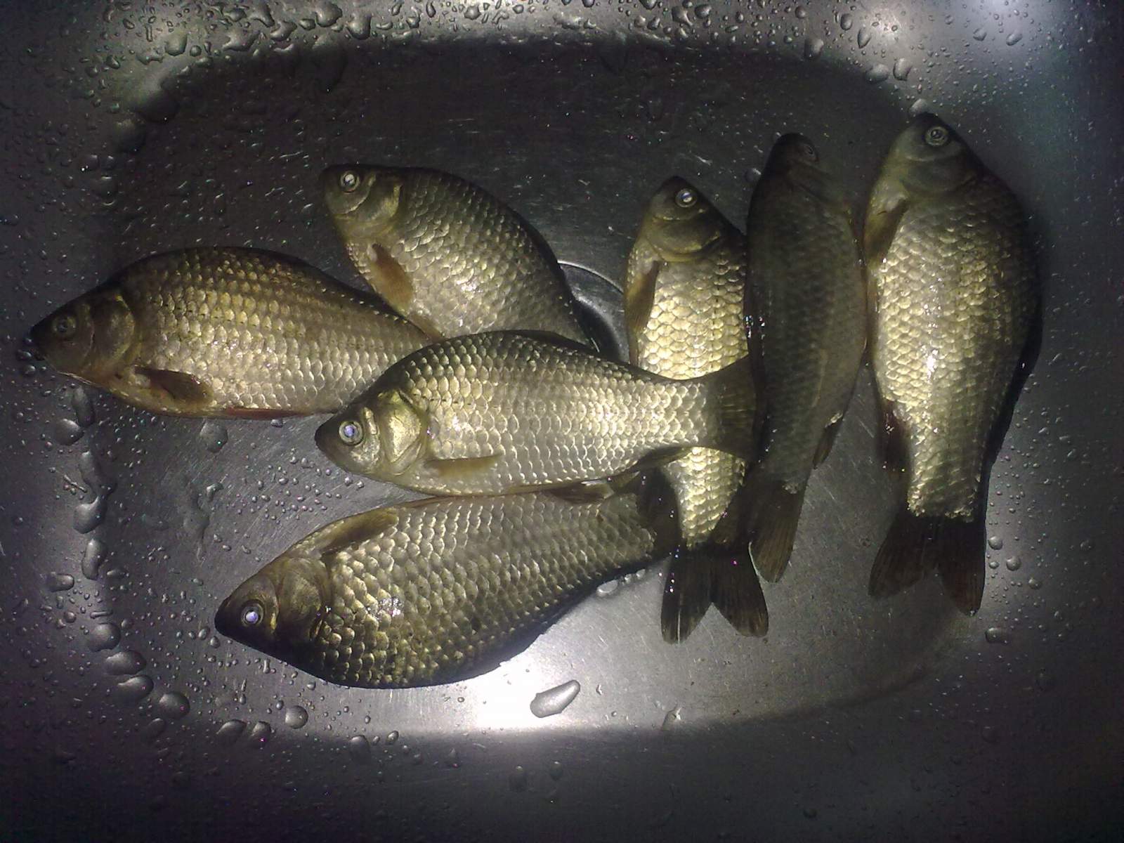 Сегодня рыбачили с товарищем с лодки на глубине 3,5 м. Карасик начал клевать только в 6.40 и до 8.40. Потом минут на 20 затишье и клев тарин вперемешку с карасем, редко больше ладошки. Клев хоть и капризный, но продолжался, а около 12 стали собираться... Прикормка - фишка, насадка - хлеб и перловка. Червя, тесто и кукурузу игнорировал. Улов по 2-2.5 кг.