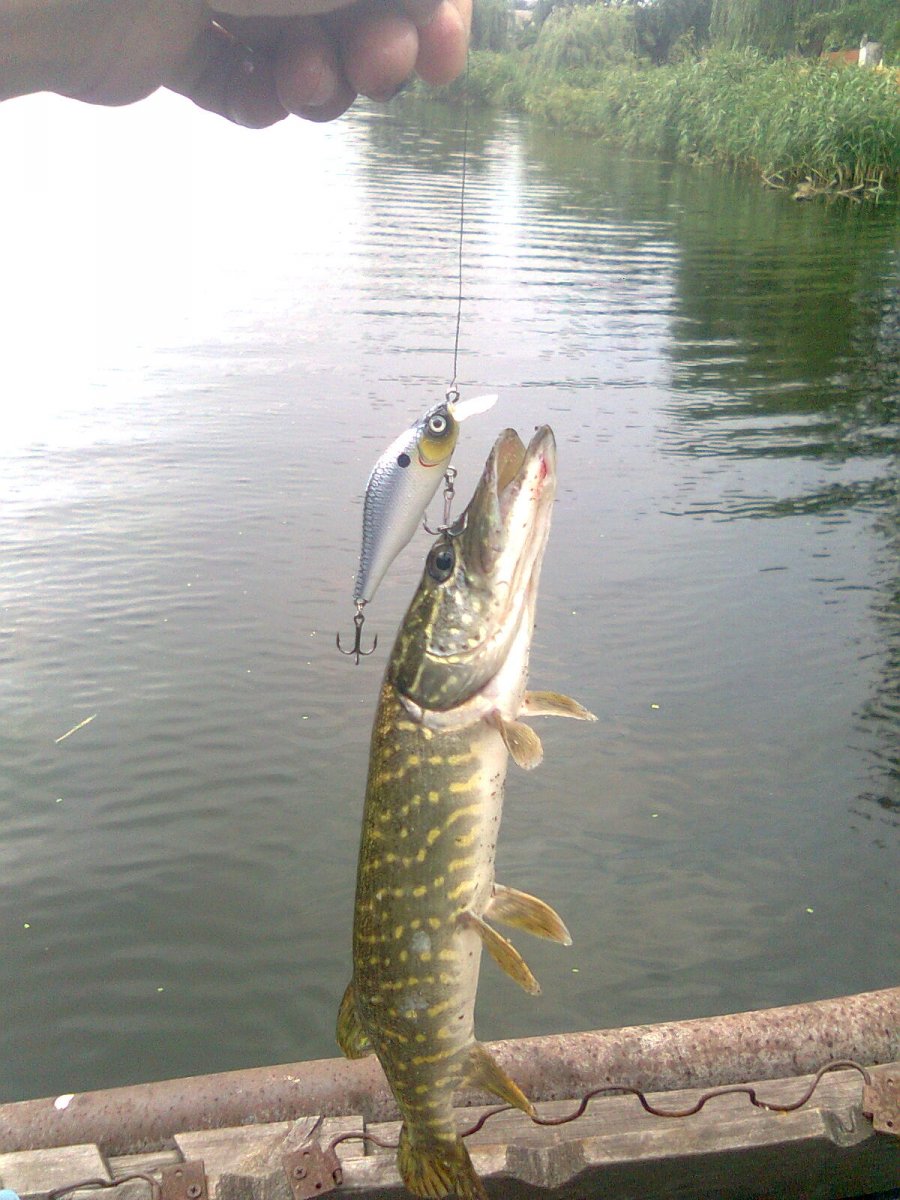 всем привет. Были вчера с товарищем на речке в районе Гданцевки со спиннингами. Прибыли поздно, в 08:00, ходили-бродили туда-назад-обратно до 13:00. У меня - одна маленькая и один сход, у товарища - четыре маленьких (все проходят тест на минимальный размер рыб, допустимых к вылавливанию), окунь не попадался. У меня сработал Маппс Комет Блек Фьюри 3 с красными точками, у товарища - все на Джексон Лонг 2 с золотистым лепестком. Крупняка по прежнему нет... Очень интересный факт: все пять рыб на двоих были пойманы с одной точки на первых 1-3 метрах проводки из-под противоположного берега (даже не то чтобы на одном подходе к воде при облавливании доступного участка воды, а именно с одной конкретной точки). Ранее не приходилось так ловить даже две щуки, а тут пять...