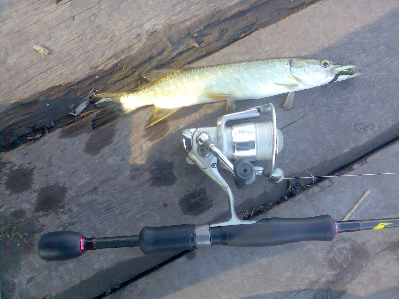 Около 6.30 следующая поклёвка, небольшая щучка, до пол кило, вытащил я, был ближе.