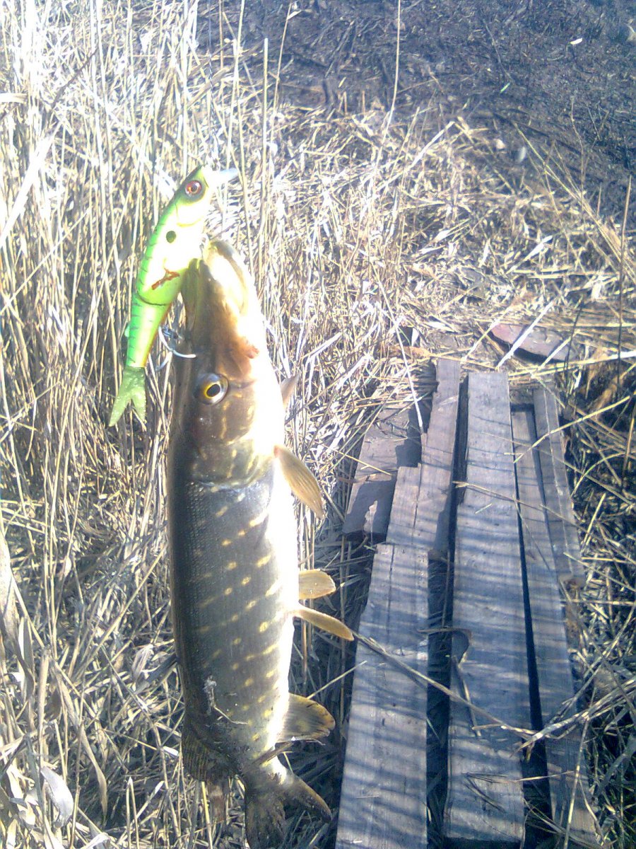 Сегодня выгуливал воблеры и неогруженую резину на Югоке.На резину хоть и были поклевки но до фотосессиине дошло а вот воблеры крепко держали зубастых.Надо будет еще попробовать половить на вэки,может результат будет получше.Еще видел нескольких однофорумчан ,один из них вовремя оказался рядом со мной когда случилась поклевка и сделал очень живое фото.