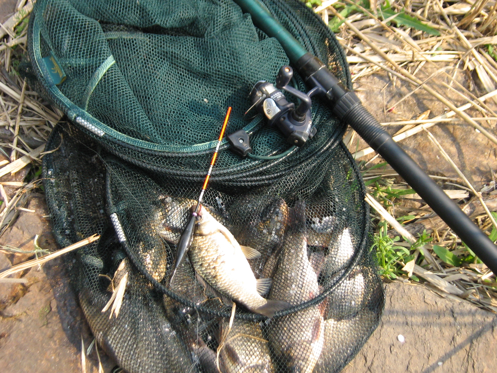 29.04.09 Был в с.Кудашевка, проходя вдоль берега заметил как треться карась, мысли насчет клева самые скверные... в 7:00 на месте, разбираю удочку и оснащаю её 0,75гр поплавком на основной леске 0,14 , поводок 0,12 с крючком №14, насадка навозный червь, глубина в месте ловли 1,5-1,7м. Прошло мин 40 после моего прихода, я успел прикормить и обустроится на месте, но клева не видно…Первая поклевка и первый неплохой карась грамм на 300 в садке, настроение отличное :) Клевало примерно до обеда, и чем ближе к обеду тем мельче карась, первый стал самым крупным за рыбалку, потом с 14:00 начало опять проклевывать, сначала мелкий, потом крупнее. С трудом заставил себя собраться в 16:40 на автобус, потому что клев только усиливался, но перспектива идти домой пешком никак не радовала :) После того как я вытащил садок, был приятно удивлен, 9-10 кг, но мне столько не надо,а соседи обойдуться :) поэтому оставляю себе 5 кг отборного карася и направляюсь домой...