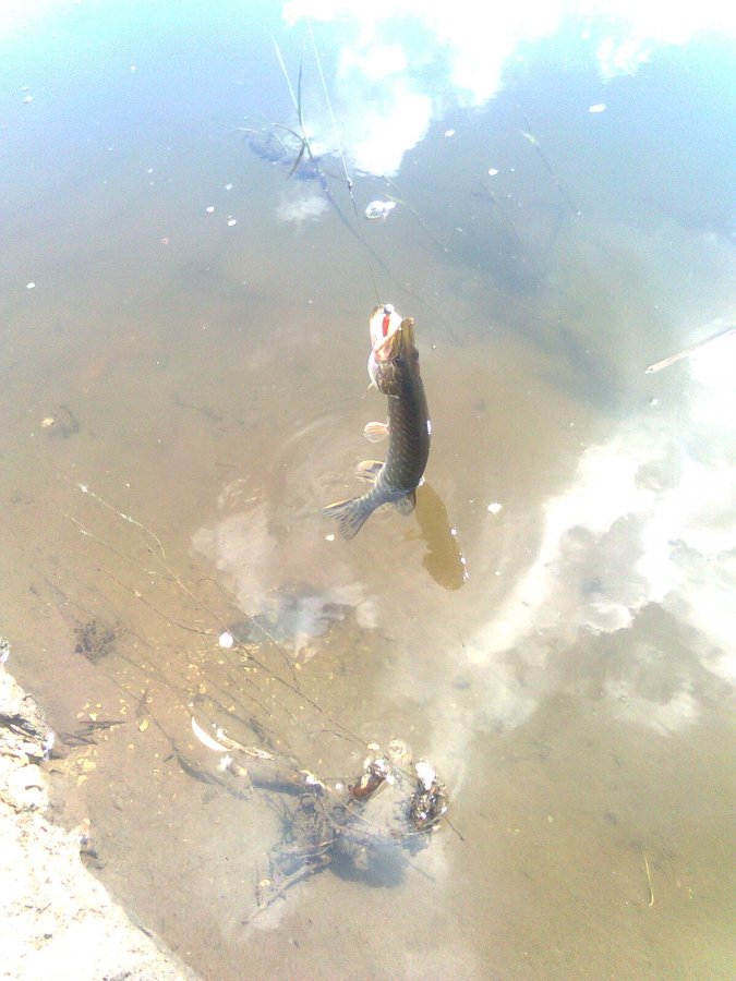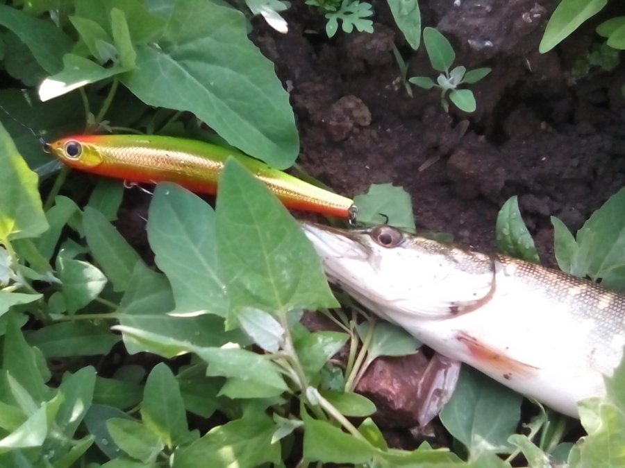 Всем привет :hi:. Управившись с домашними делами и почтивши память родственников вырвался на пару часиков на рыбалку в стиле Street fishing. Несмотря на идущий целый день дождик в 16:00 попадаем компанией из трёх человек на городской водоём. встаю на проверенную точку и полоскаю потихоньку буратинок, заметивши проявившиюся активность щуки на поверхности делаю заброс в точку и зарабатываю уверенную поклёвку на пополнившего арсенал воблеров TsuYoki WATSON 110SP IMG_20160507_164018.jpg . В итоге на первой же рыбалке, на его счету два шнурка и глухой зацеп %). Сц...ка оборвал. Брал на пробу, не знал потянет ли моя палочка его. Щас закажу ещё в этом же цвете и возьму ещё натурала :D. Рыба вся отпущена подростать, всем НХНЧ!!!
