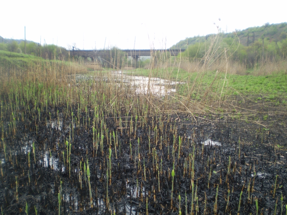 По всему пути где то на 70-80% выпалены камыши и трава на берегу.