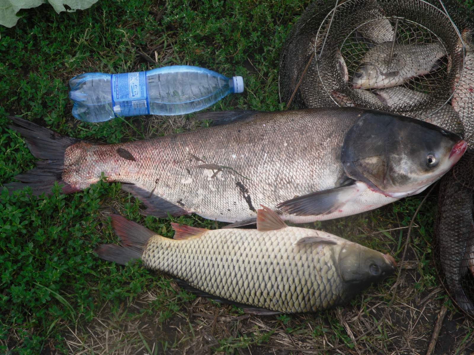 О поездке договорились ещё дня 4 назад и вот наконец-то 15.06 в 10 утра погрузились в машину и двинулись в путь. В 12:15 приехали ,сходили к охране обилетились и пошли пообщались со знакомыми которые приехали туда 14.06 , нам сказали что клёв неважный . Ну не клюет , так не клюет ,хоть что-то же за сутки поймаем.Где-то через час зазвенел первый колокольчик и на берегу оказался карась грамм 300-400 (стандартный размер для данного водоёма) , это стало внушать надежду , да и толстолоб гулял. К вечеру клёв немного улучшился , но примерно в 22:30 уже напрочь отрезало. Полная луна , да при её свете можно и фонариком было не пользоваться.Ночью фидеры даже и не шевельнулись . Дальше было , то о чём ник-то даже и не мог подумать, ровно в 4:00 у одного из нашей компании зазвенел колокольчик и после подсечки раздался крик :"Подсааак!!!". Это был амур , завели в подсак и казалось бы уже на берегу , но... выпрыгивает из подсака и разламав крючок уходит, крючок для него маленький , оснастка была на карася. Ну что же не судьба , попили чайку и дальше ловить. Потом было 2 поклёвки карпа , но метрах в 15 от берега сходил . Примерно в 7 утра опять крик:"Подсааак!!!" , в этот раз уже взяли и это был толсолоб (на фото) .Только спин был перезаброшен клюнул карпик , которого тоже взяли. Как потом выяснилось "Дед" прикармливал зелёной прикормкой:i070522:, названия не сказал.Дальше ничего особенного не было , карасики проскакивали и всё. В 11:00 устроили фотосессию и стали собираться .Водоём очень понравился и уже планируем следующий выезд.Дальше немного фото: