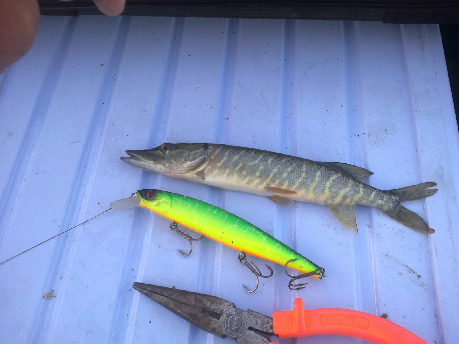 Осваиваю фидер. Он такой чувствительный, что, когда тащила тюльку поперёк, орала, чтоб несли подсак. Мужики чуть не уписялись, когда увидели мой "трофей".