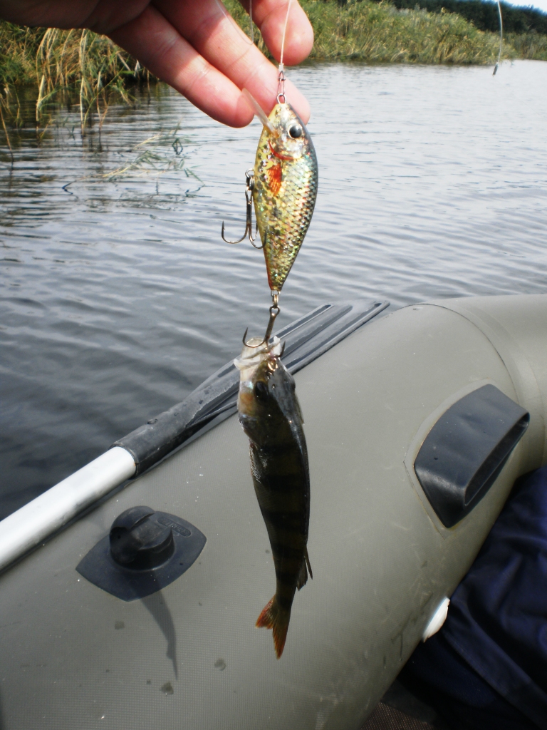 Сел на все три крючка тройника, бедолага, но остался жив!